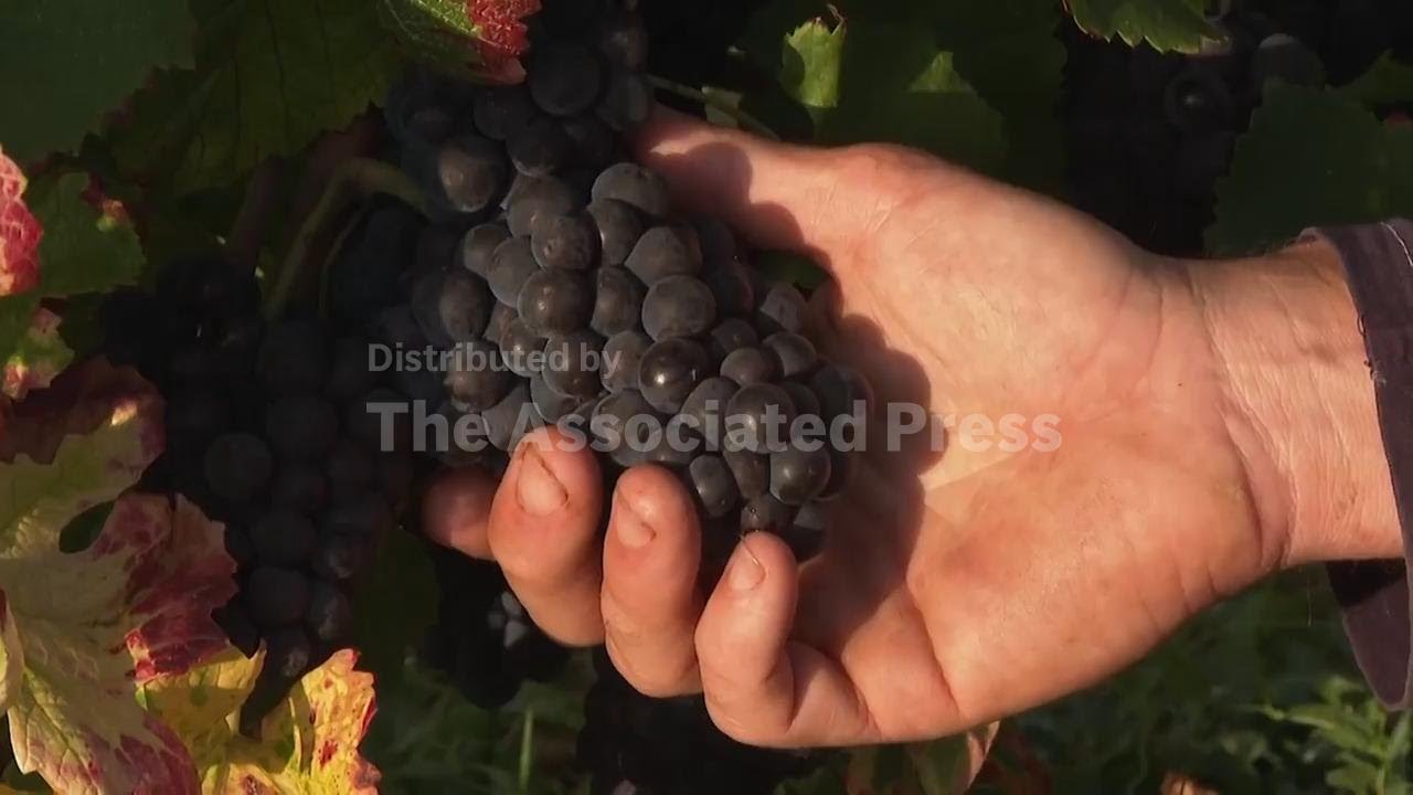 1. Various of harvesting of Pinot Noir grapes at Château de Pommard