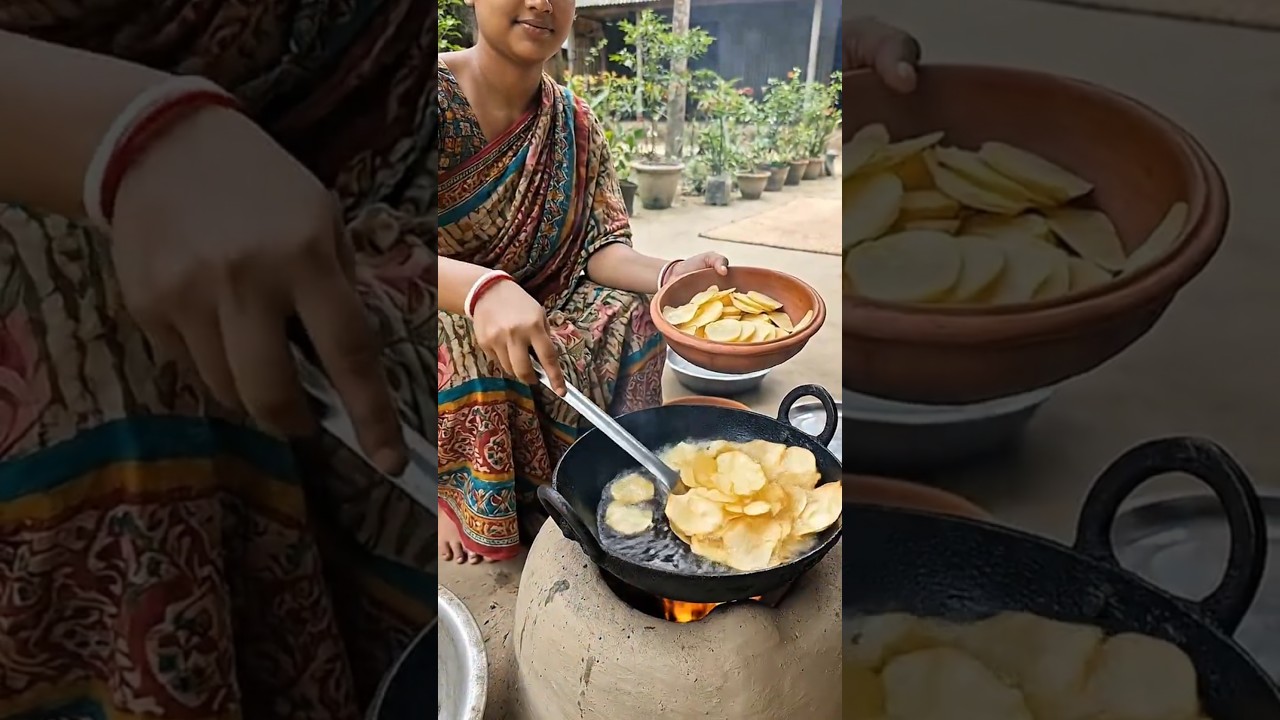 Village Style Potato Chips Frying | #shorts #cooking #recipe