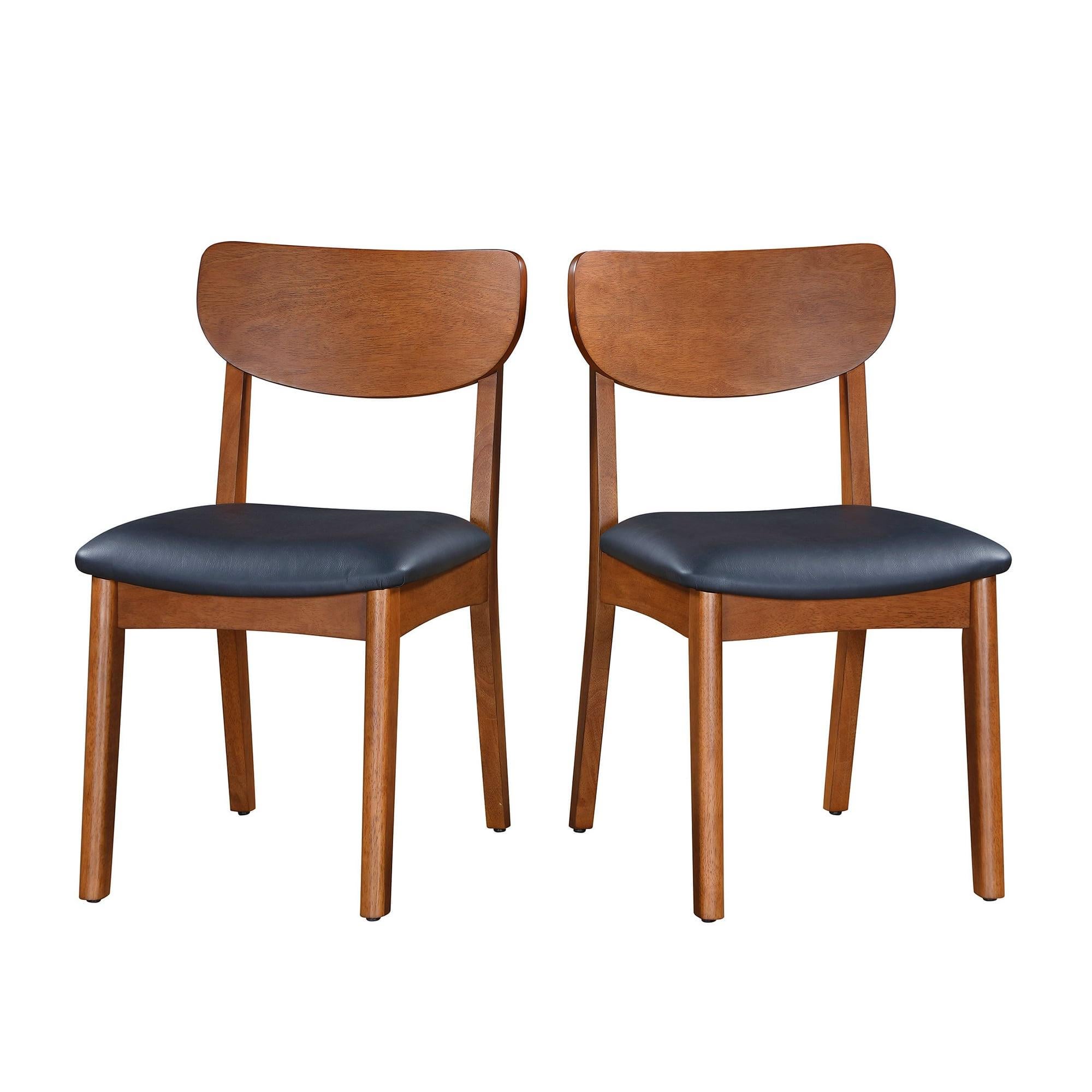 I'm looking at buying dining chairs that have 2 seat color options, either a dark blue fabric or a faux black leather, and am torn over which to go with. Both read a little masculine to me (as a single women living alone), however they are reasonably priced and the walnut color is the closest I've found to my existing table. I have a black leather footstool in the living room and am planning a blue rug so both seem reasonable. The room paint is generic apartment light beige.