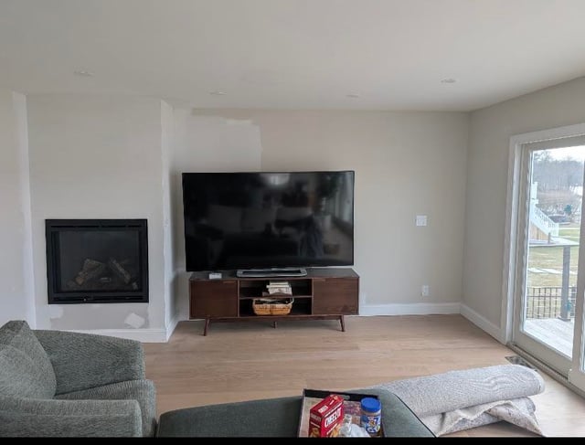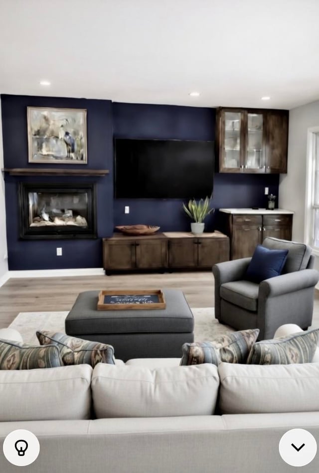 AI photo and current room. We are adding another matching green chair and a love seat in the neutral color of the sofa. The rest of the walls are painted natural cream which is a light greige.