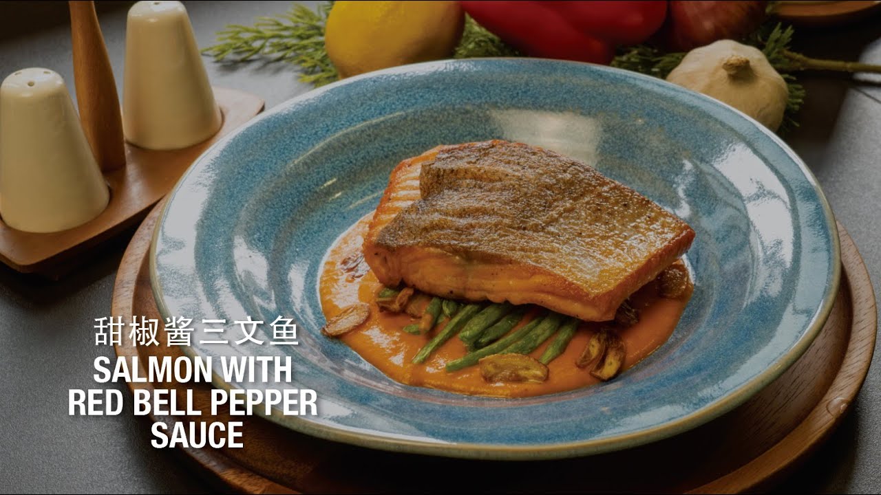 SALMON WITH RED BELL PEPPER SAUCE 甜椒酱三文鱼