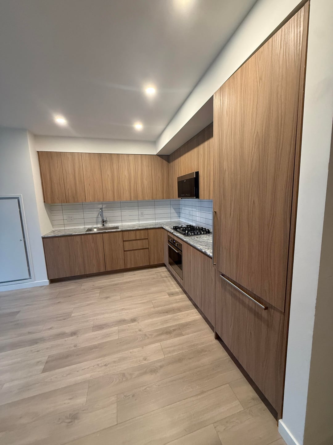 I’d go darker wood grains for some contrast–certainly not black, though (sorry, husband). And also oval as that would soften the sharp lines of your kitchen.