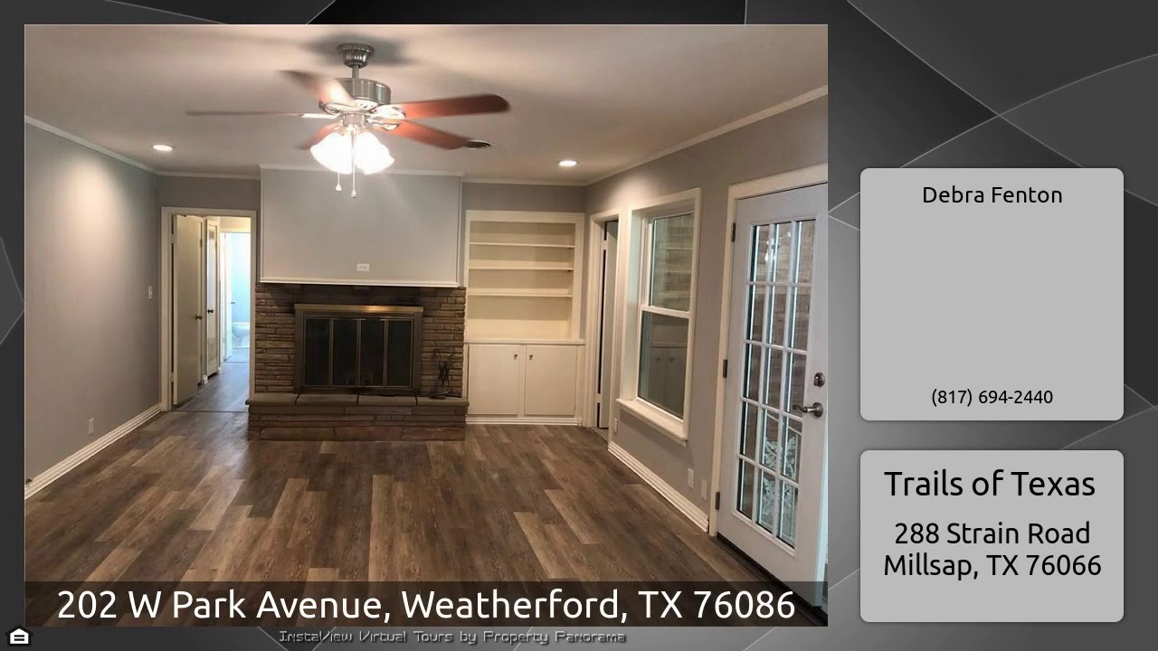 The Virtual Tour for the property at 202 W Park Avenue, Weatherford, TX 76086 listed for $266,350: Other homes for sale by Debra Fenton of Trails of Texas: This completely remodeled 3 bedroom 3 bath brick home is ideally located on corner lot. This spacious home features 2 living area, 2 dining areas and french door leading to the sun room. Kitchen has new stainless appliances, new granite and features a breakfast bar. All baths have been updated with new tile and fixtures. The home has fresh paint both inside and out. and all new flooring through out boasting the latest decorator colors. …
