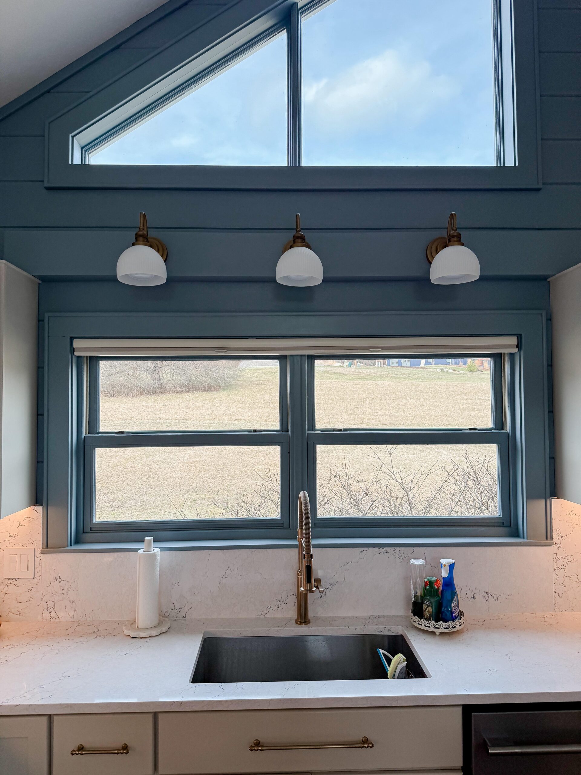 We are almost done with our kitchen renovation, and I hate our blinds and the old wood window frame. For now, we cannot replace the window, ideally I’d want a big picture window. What do you suggest for window treatments? Wooden blinds? Roman shades? Leave as is?