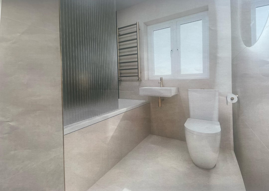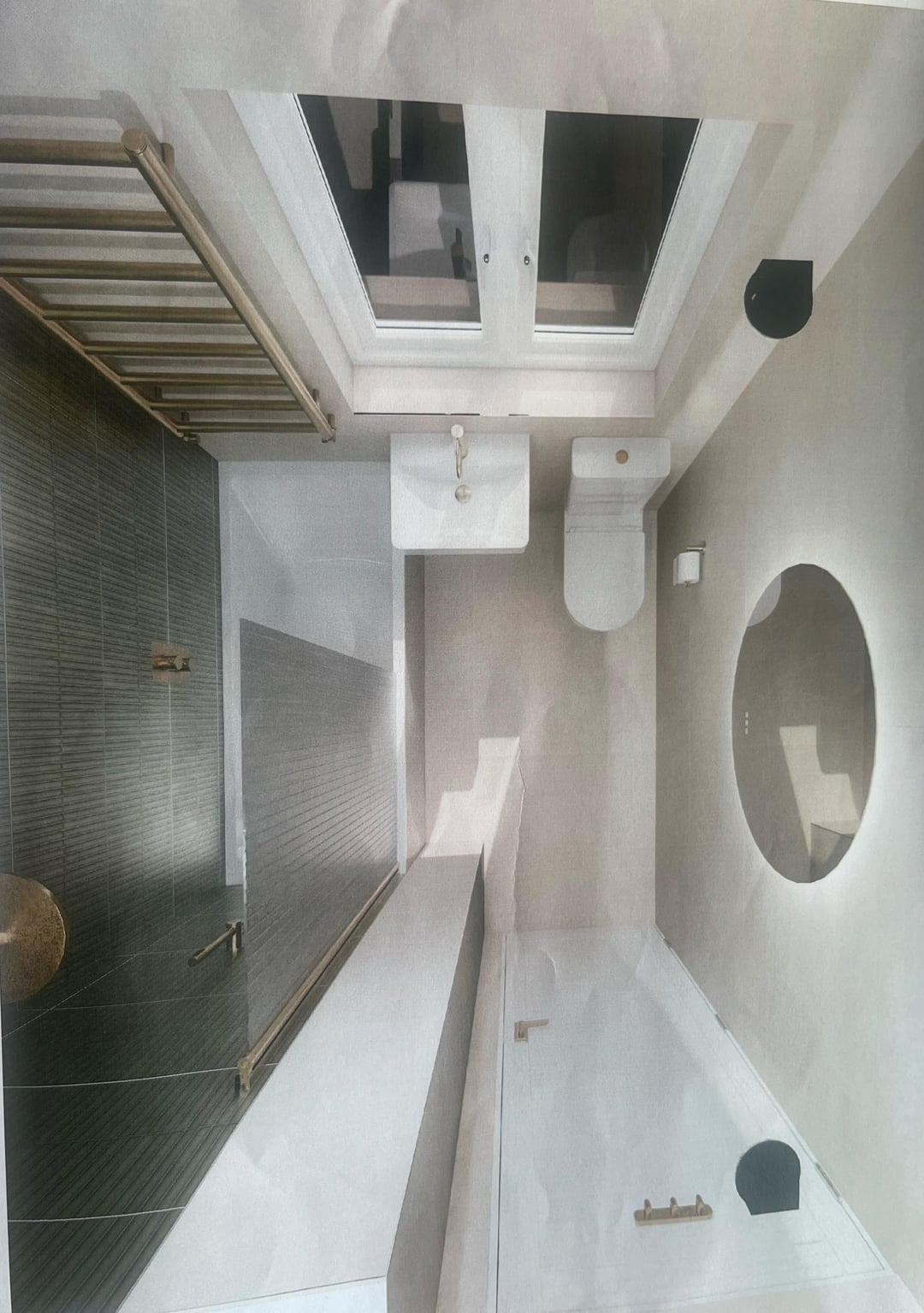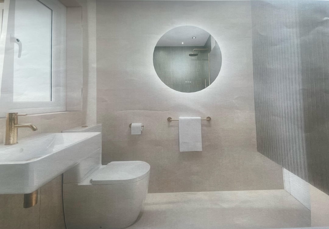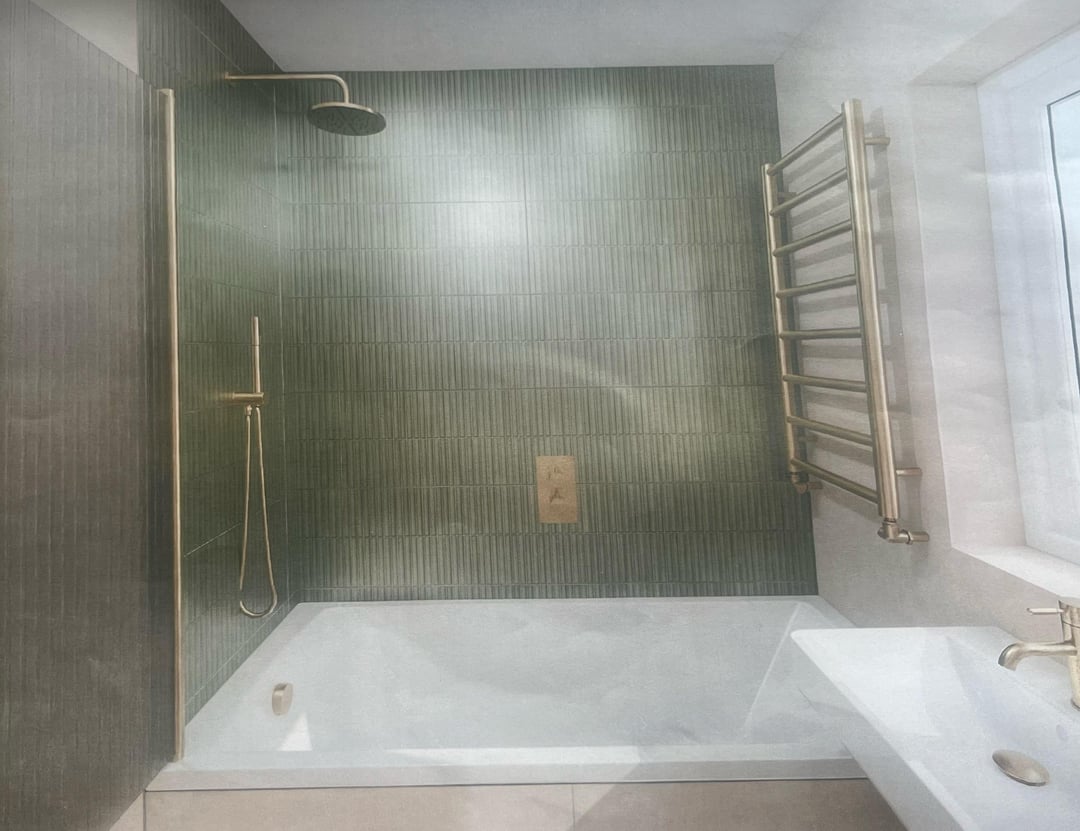 Small bathroom with green textured tiles on the shower wall, fluted glass screen and brushed brash metals. It feels a bit off but I don’t know how to fix it- tiles over sink? Wall with mirror on needs more impact? by Late_Fee_4748 home and gardenhome decoratinghome decorating ideasWrite A CommentYou must be logged in to post a comment.