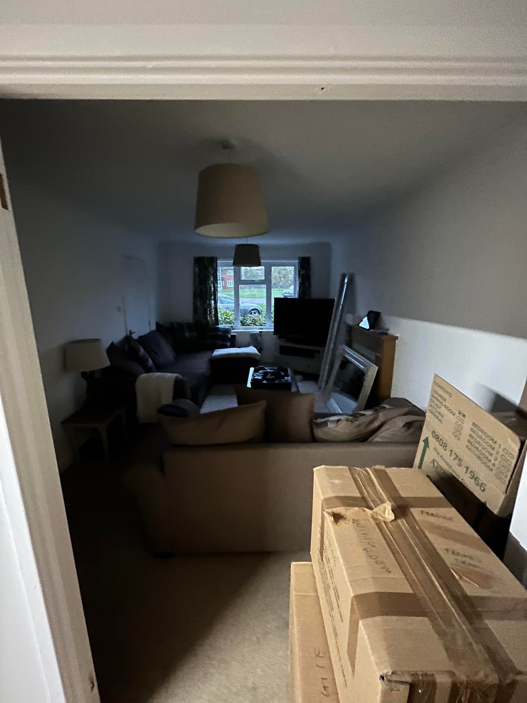 So, we’ve just moved in to yet another military housing and our furniture I feel is overwhelming, my husband has blocked the door and placed the tv in the corner which I cannot stand. Any help or thoughts would be greatly appreciate before I lose my mind 😩