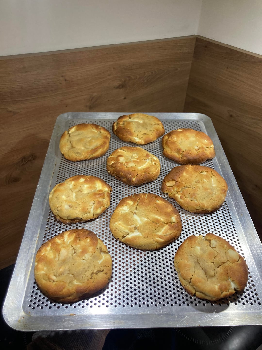 Cuire à 200°C (chaleur tournante) pendant 10 minutes si vous comptez les manger dans les 2 à 3 heures, ou 8 minutes si vous les gardez pour plus tard. Laisser refroidir complètement avant de déguster.