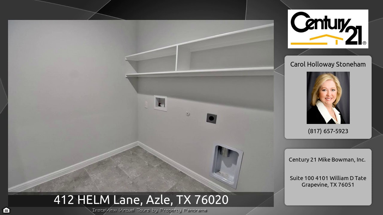 The Virtual Tour for the property at 412 HELM Lane, Azle, TX 76020 listed for $242,000: Other homes for sale by Carol Holloway Stoneham of Century 21 Mike Bowman, Inc.: NEW! NOW! WOW!!!~ STUNNING NEW 1 STORY in the EXCLUSIVE NEW D.R. HORTON COMMUNITY OF HARBOR PARC!~Los Alamos Floorplan-(Elev B)~Beautiful complete 1 Story 3-2-2 with Study & French Doors,optional Formal Dining*Open concept Living,Dining & Kitchen with Granite Countertops,above pendant & recessed lighting,tiled backsplash,seating Island,stained Cabinets with crown molding & walk-In Pantry*Tiled wet areas*Split Bedrooms with …