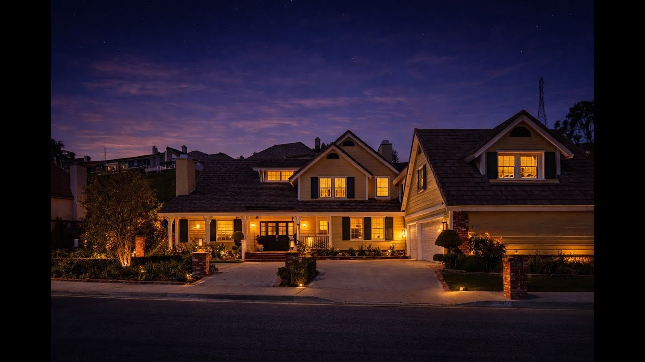 Welcome to this beautiful five-bedroom, four-bath residence with approximately 4,216 square feet of thoughtfully designed space and resort-style living on a peaceful cul-de-sac. Blending timeless charm and modern updates, the exterior showcases Cape Cod and Colonial Revival influences, highlighted by a welcoming covered front porch and circular drive creating impressive curb appeal. The grand two-story foyer features a luxurious Carrera marble floor. The open floor plan offers elegant formal living and dining rooms. The French country-inspired kitchen, featuring warm, muted tones, evokes timeless cottage charm. Kitchen opens to casual dining area overlooking the pool and expansive den featuring custom wainscotting/woodwork and a fireplace. Hardwood floors add a sense of continuity to much of the livable space. Downstairs includes a large bedroom/office, remodeled bath, and laundry room with storage and outdoor access to the pool. Upgrades include beautifully remodeled bathrooms, newer carpet, and paint. Upstairs, the primary suite features a cozy retreat with a fireplace, offering a peaceful sanctuary. Elegantly remodeled primary bath features a luxurious soaking tub, quartz surfaces, and gold finishes, the ideal place to relax and recharge. A separate walk-in shower and toilet area offers privacy. The added bonus room with soaring ceilings is unique to this floorplan, with its own kitchen/bar and remodeled bath, which offers flexibility for a variety of uses. Upstairs features a remodeled bath and three large bedrooms, separate from the primary suite for ultimate privacy. Experience true SoCal living outside in your entertainer’s paradise, featuring a sparkling pool, fully equipped dining and entertainment area with a newer grill, and large green space. The expansive outdoor space complements the home’s impressive interior. Oversized three-car garage has storage and 220V for your EV. Timeless design, classic style, modern upgrades, and resort-style amenities make this remarkable residence the ideal place to call home!