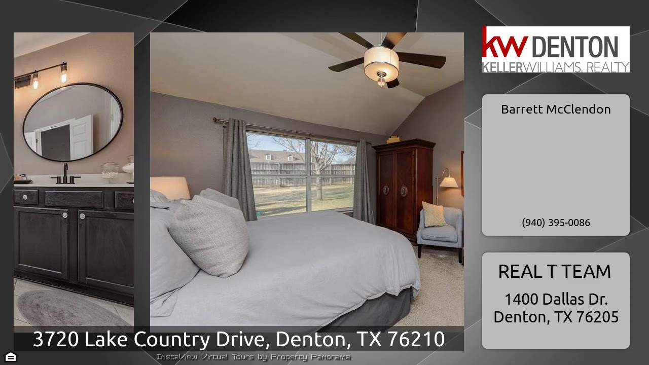 The Virtual Tour for the property at 3720 Lake Country Drive, Denton, TX 76210 listed for $239,900: Other homes for sale by Barrett McClendon of REAL T TEAM: Priced to sell!!! Beautiful home located in the sought after south Denton neighborhood of Sundown Ranch Estates, This home features designer paint colors throughout, new light fixtures, new fans, granite counters, stainless steel appliances, formal dining room with double french doors, open layout, solar screens, large backyard, new hot water heater, new garage door opener, recently replaced HVAC unit with transferable warranty, …