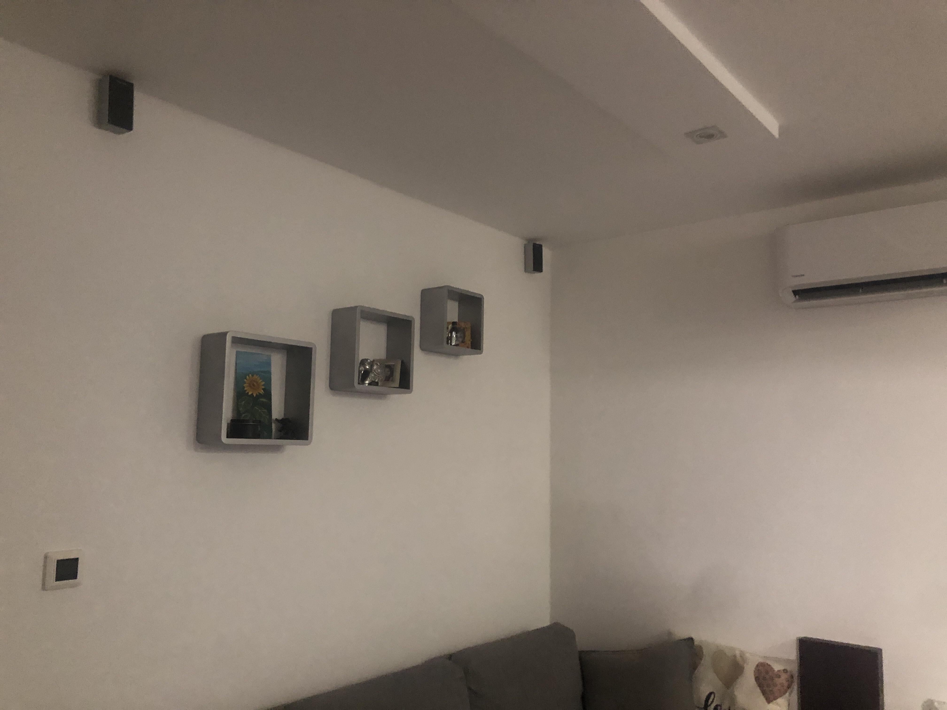 Most of my house is grey, and not by my choice. I’d love to add some color, but I don’t want to go overboard and have it look out of place compared to the other rooms. I just want my living room to feel a bit more vibrant and less depressing. The speakers are staying on the wall, but I’m thinking of either removing the boring grey shelves or repainting them.