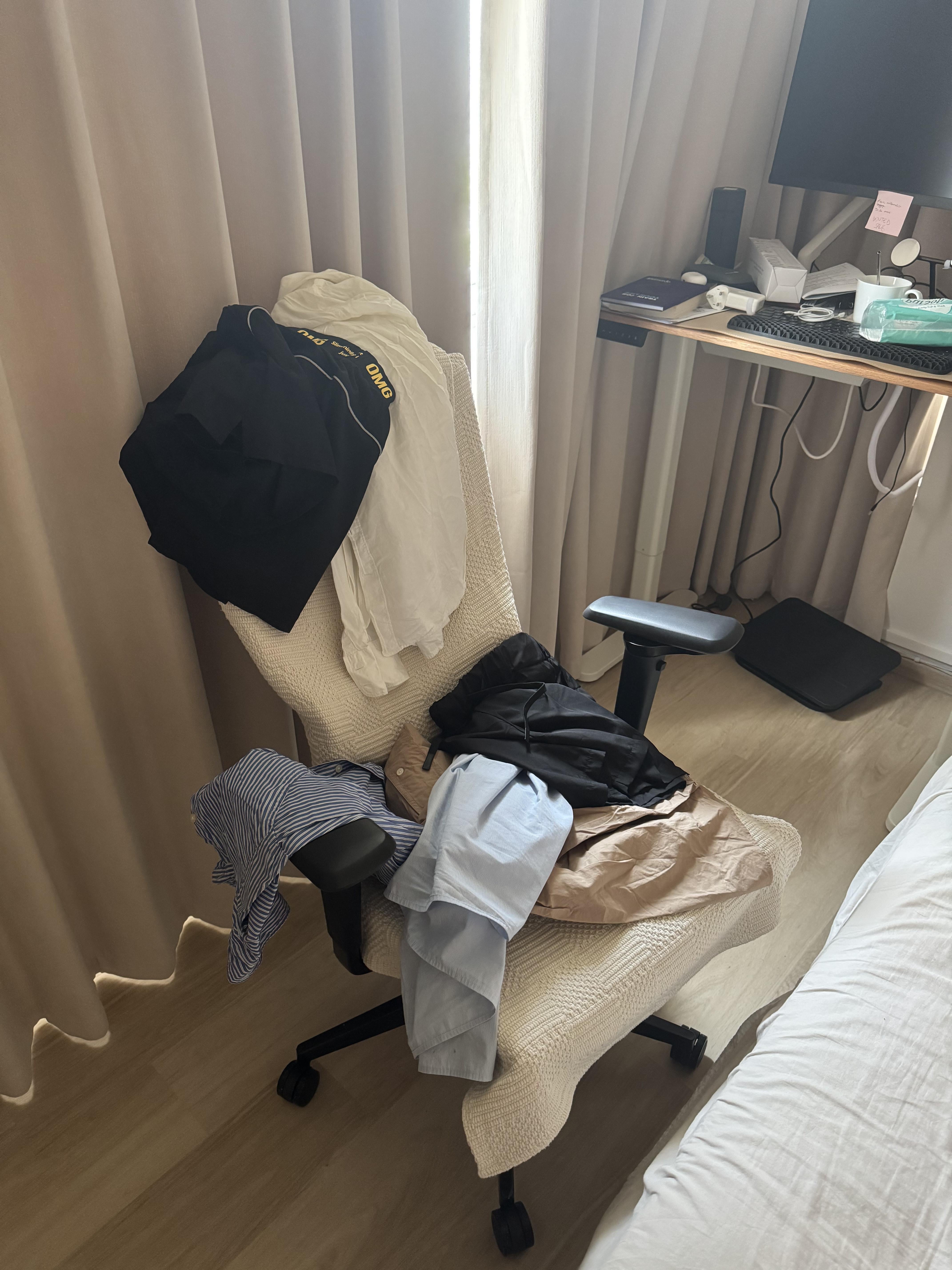 Right now they just… end up on a chair…