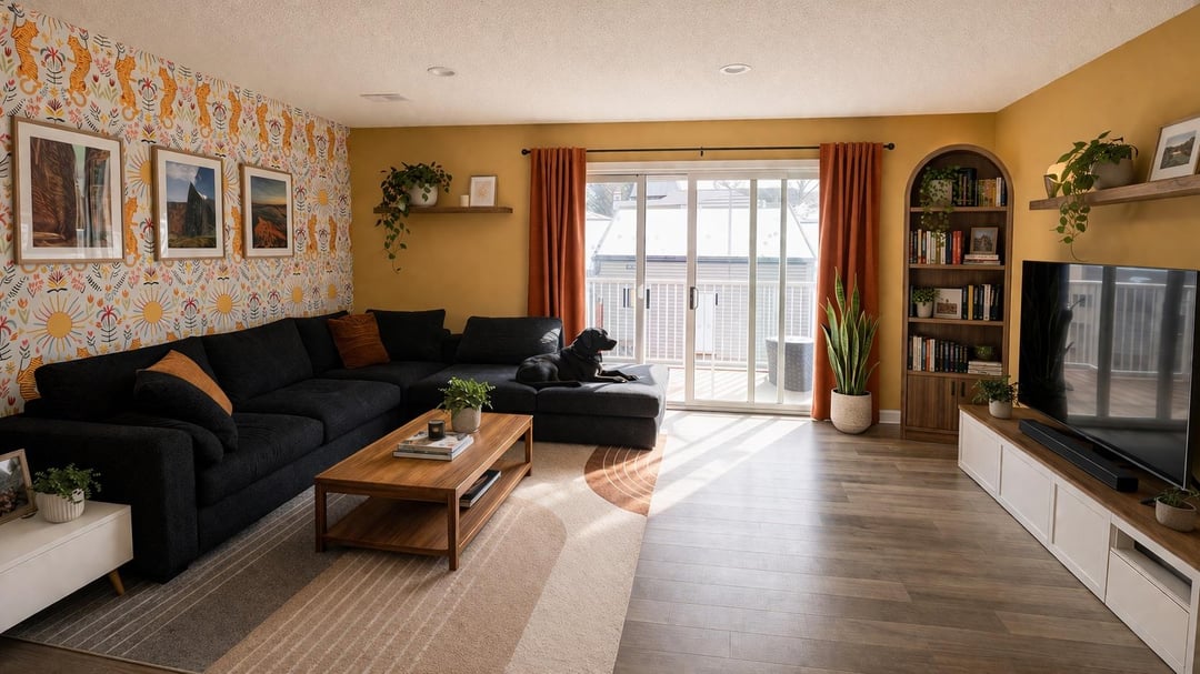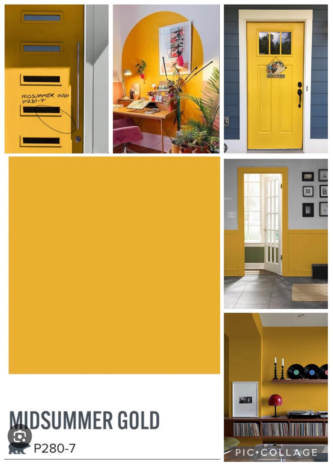 I decided to paint my living room yellow but I’m struggling to find the perfect shade of paint. I ai generated the vision for the room. I like Behr paint, and I’m considering Midsummer Gold and Turmeric, but I think the first is too yellow and the second is not yellow enough. Anyone know a colour that’s in between??