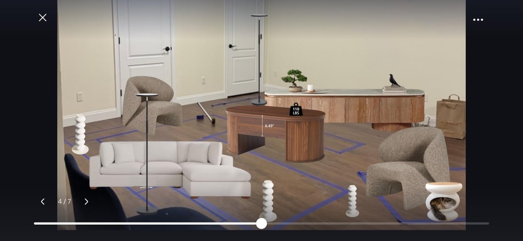 Is the floor of the same saturation/brightness as pictured? This looks to be a greyish/neutral laminate. The coffee table thing on the top right is white-oakish and has a pretty noticeable grain. If white balls are side/drink tables they look good with the rest of your choices, but with none of the coffee tables. #1 introduces a third, very different tone of wood. I don’t think it would look good and also it doesn’t really fit the style of other pieces of furniture #2 has a very different tone of wood and also very noticeable grain that goes in a different direction on. #3 is the closest in color where it might not clash. It’s also the most boring option and is too cornery/harsh for the space and sitting next to other pieces of furniture. All other pieces have round edges, smooth lines and shapes. I feel like your couch is safe and boring, but you have plenty of other fun stuff to make up for it. Interestingly, even the couch seems to have rounded pillows on top (unless I’m seeing it wrong). So I would make sure that you’re taking this in consideration when picking a coffee table.