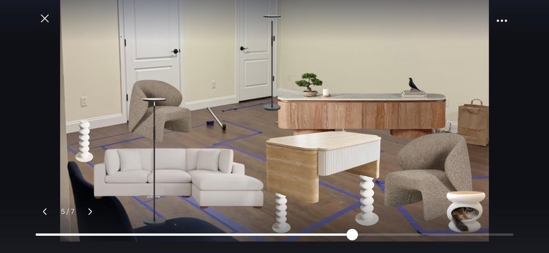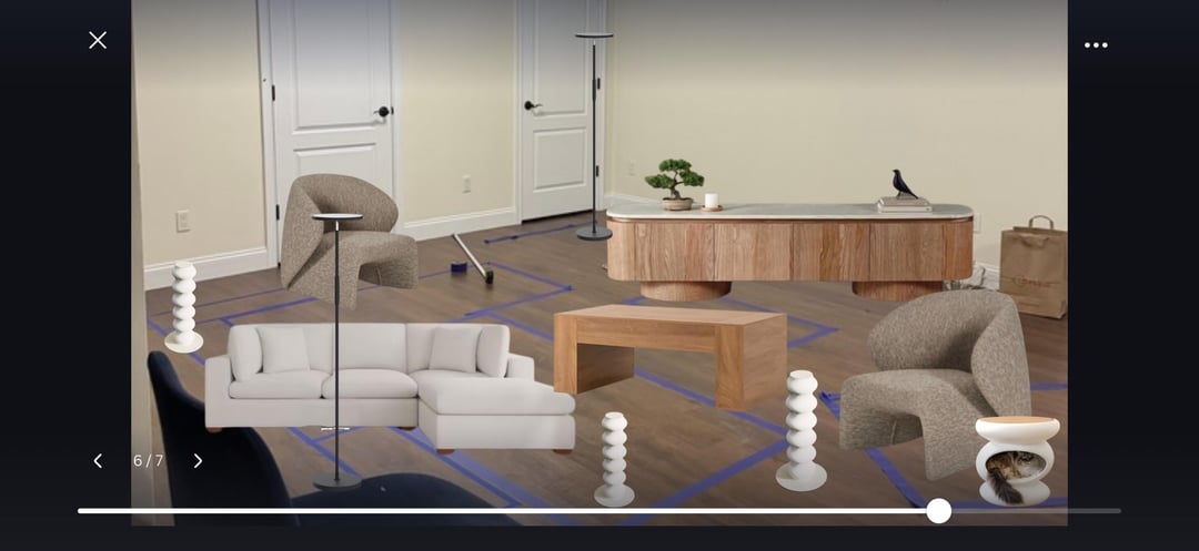 Excuse the awful bg picture, but I wanted to see how the furniture would look with the existing wood floors. My partner has requested a lift top coffee table which has severely limited my options. All of the other furniture has been purchased