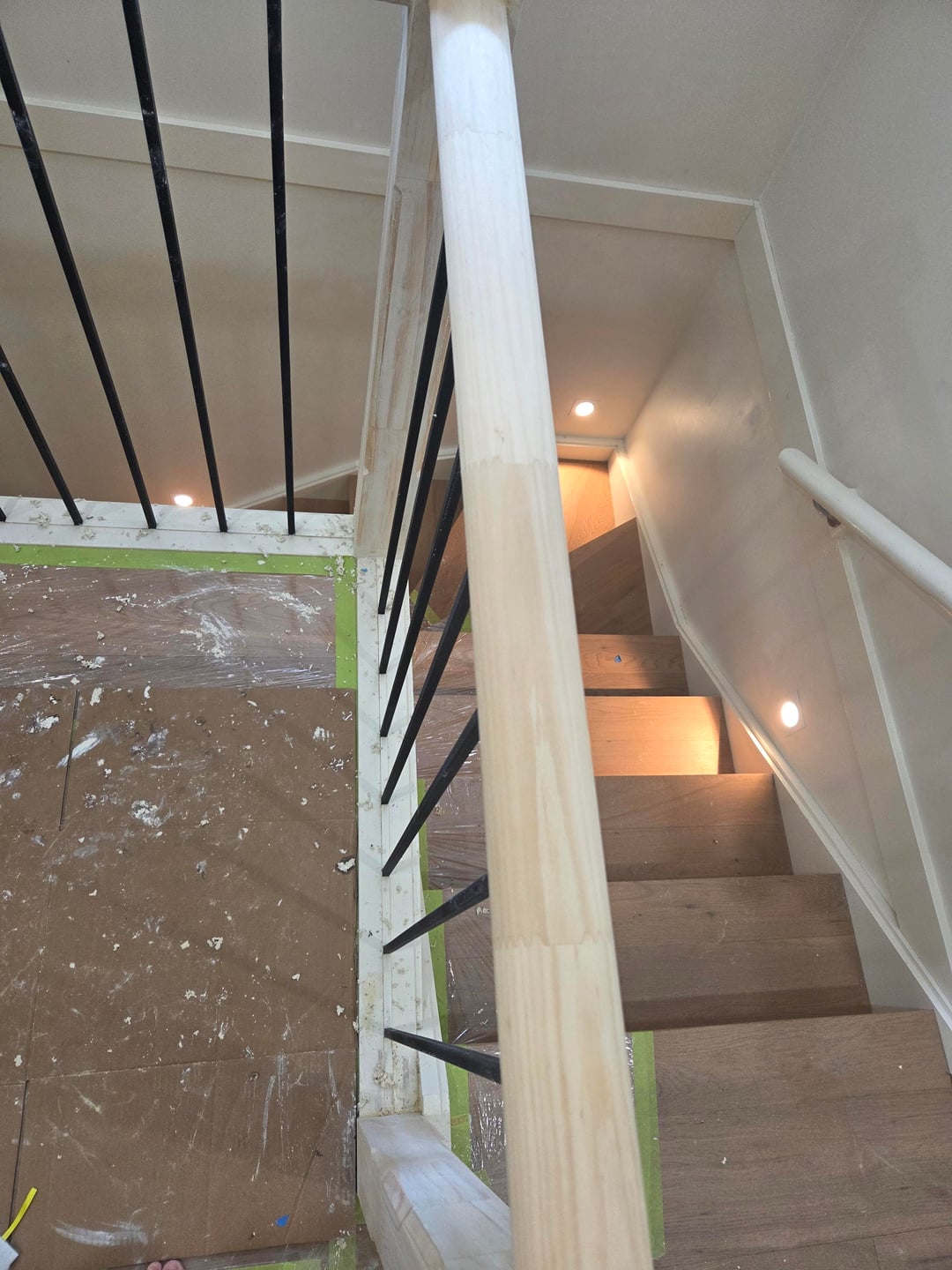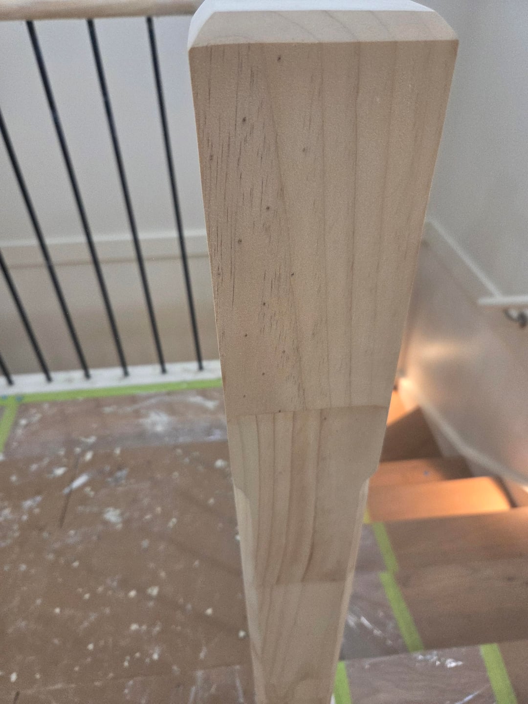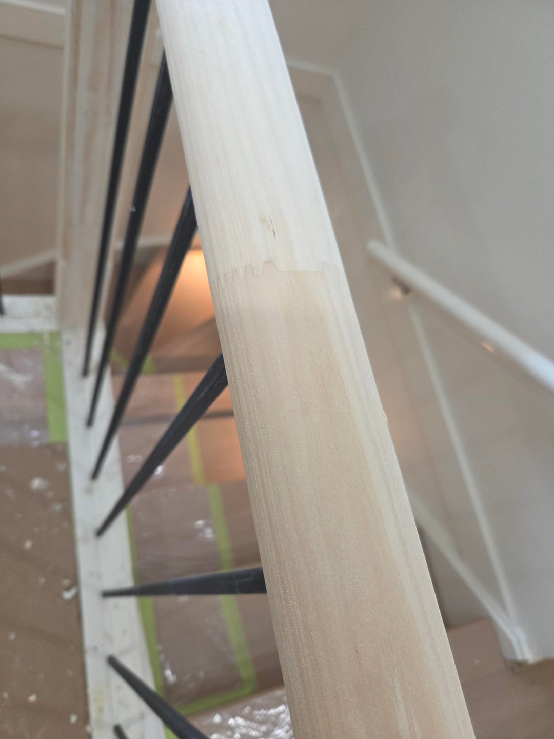 so I'm doing A LOT of decorating/renovations at the moment. we got wooden floors put in and I thought wouldn't it look great if the start rails were also wood? so sanded it back and it is pine? but like finger jointed glued pine or something? So now I am wondering is it worth staining it to give it some life or will is look cheap/weird?