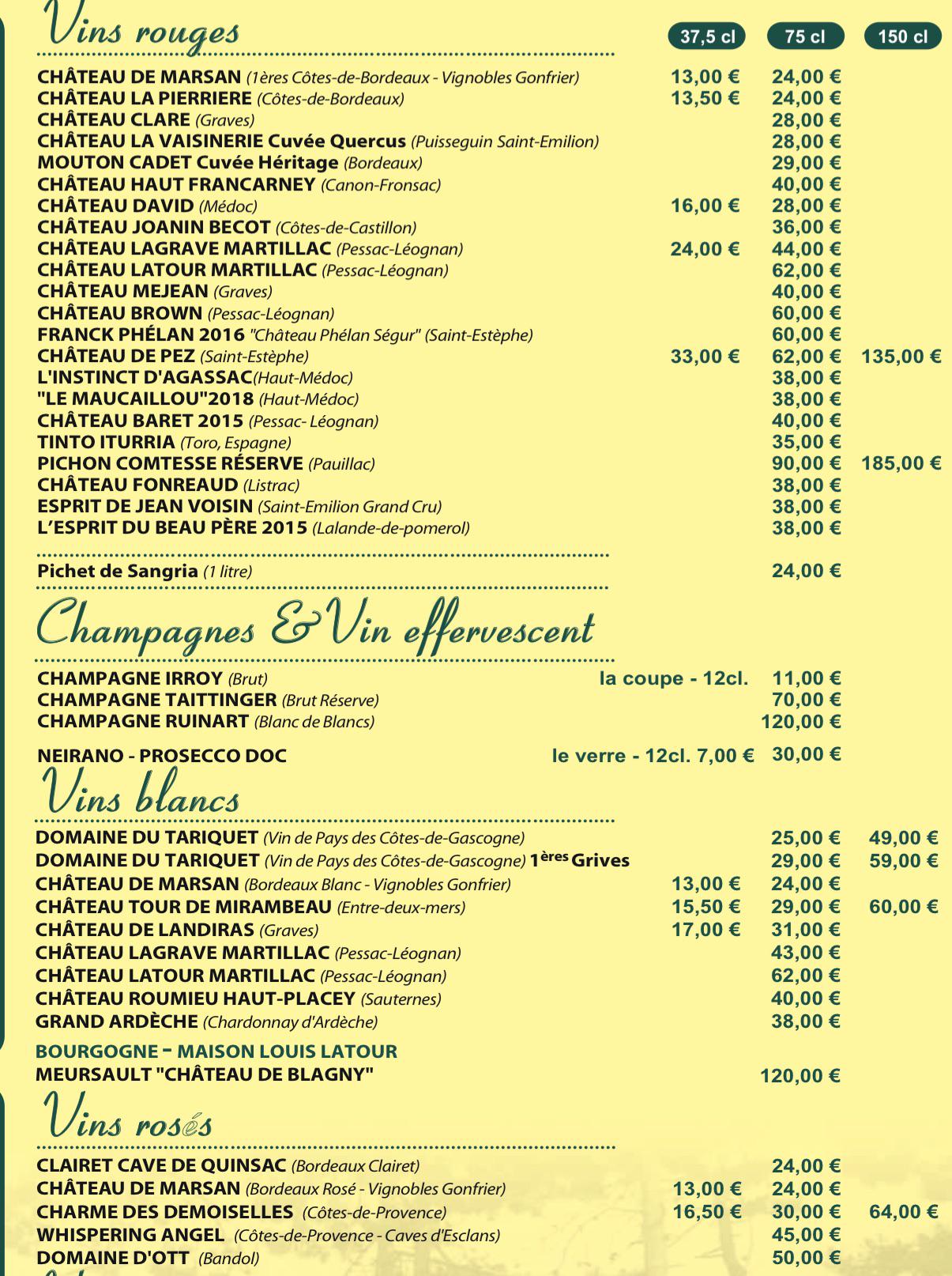 Uniquement des grosses maisons, une carte des vins qui fait vraiment pas rêver les amateurs de belles bouteilles !