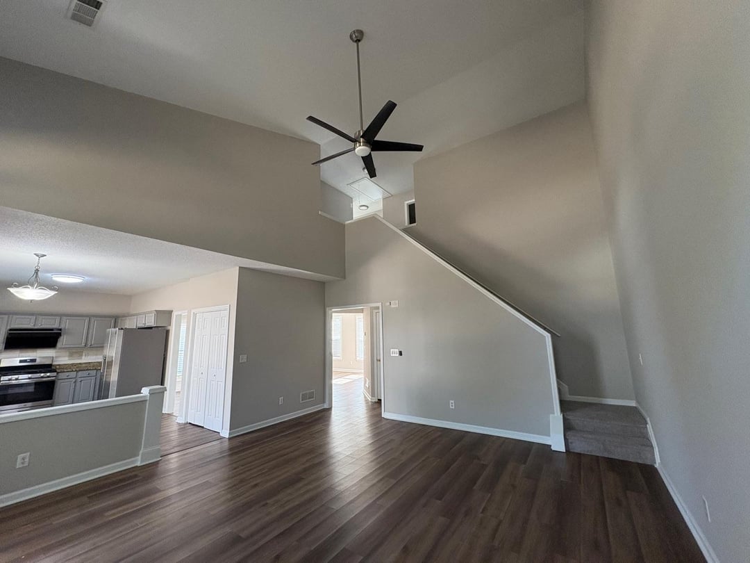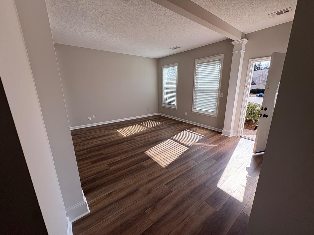 The photos were taken around 1pm, and the foyer is super bright but the living room is still really dark.