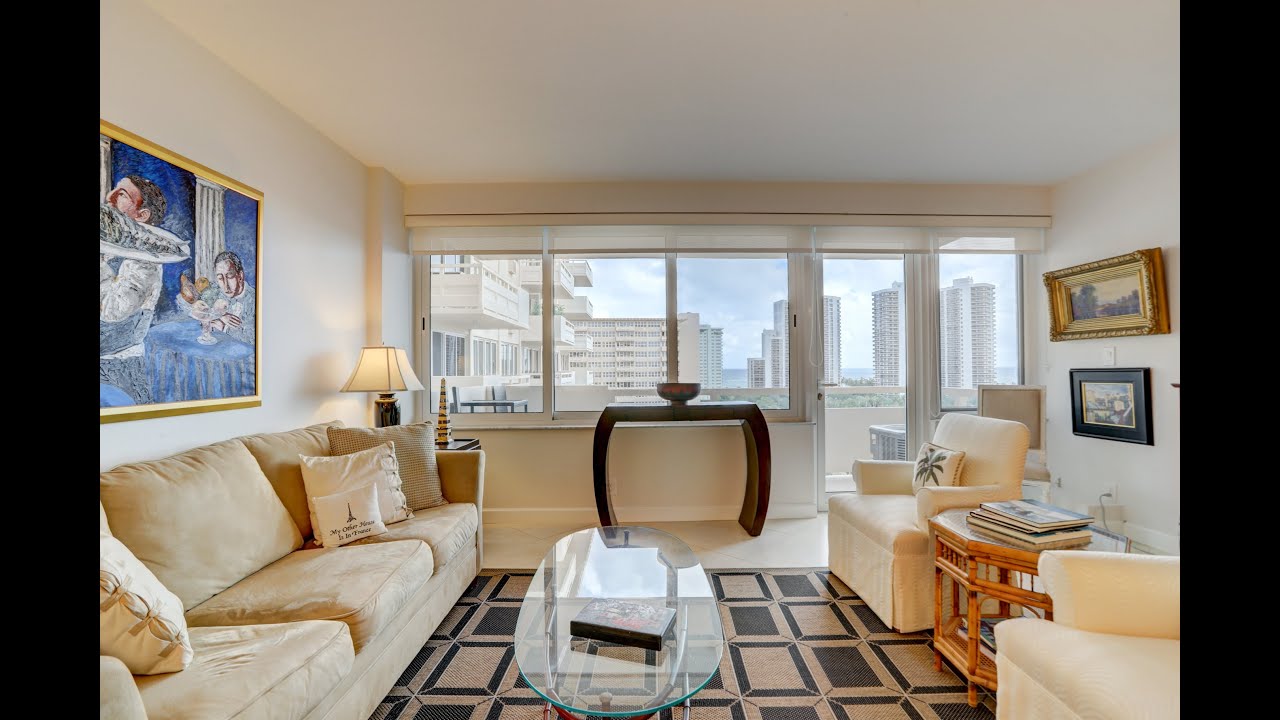 This stunning, model condition, ocean facing, hi-floor co-op apartment has been appointed with the most discriminating of tastes. It’s been thoughtfully designed in a neutral palette from its high-end Kraft-made cabinetry, to sleek modern Italian 30” tile floor running throughout. The kitchen backsplash lined in subway tile frames the Frigidaire Gallery collection of appliances and a full-sized Samsung French drawer refrigerator. A GE water filtration system keeps your water fresh and clean tasting. This sky retreat offers a spa like master bath with frame-less walk-in shower and European tiled accent walls. Its hurricane impact windows are treated with custom shades. This apartment includes a Bosch Washer/Dryer and Eco Smart tank-less water heater, rare features in few units in the building. Call realtor Jeffrey Burnell at Dwell Residential Real Estate for more information 954-298-5000.