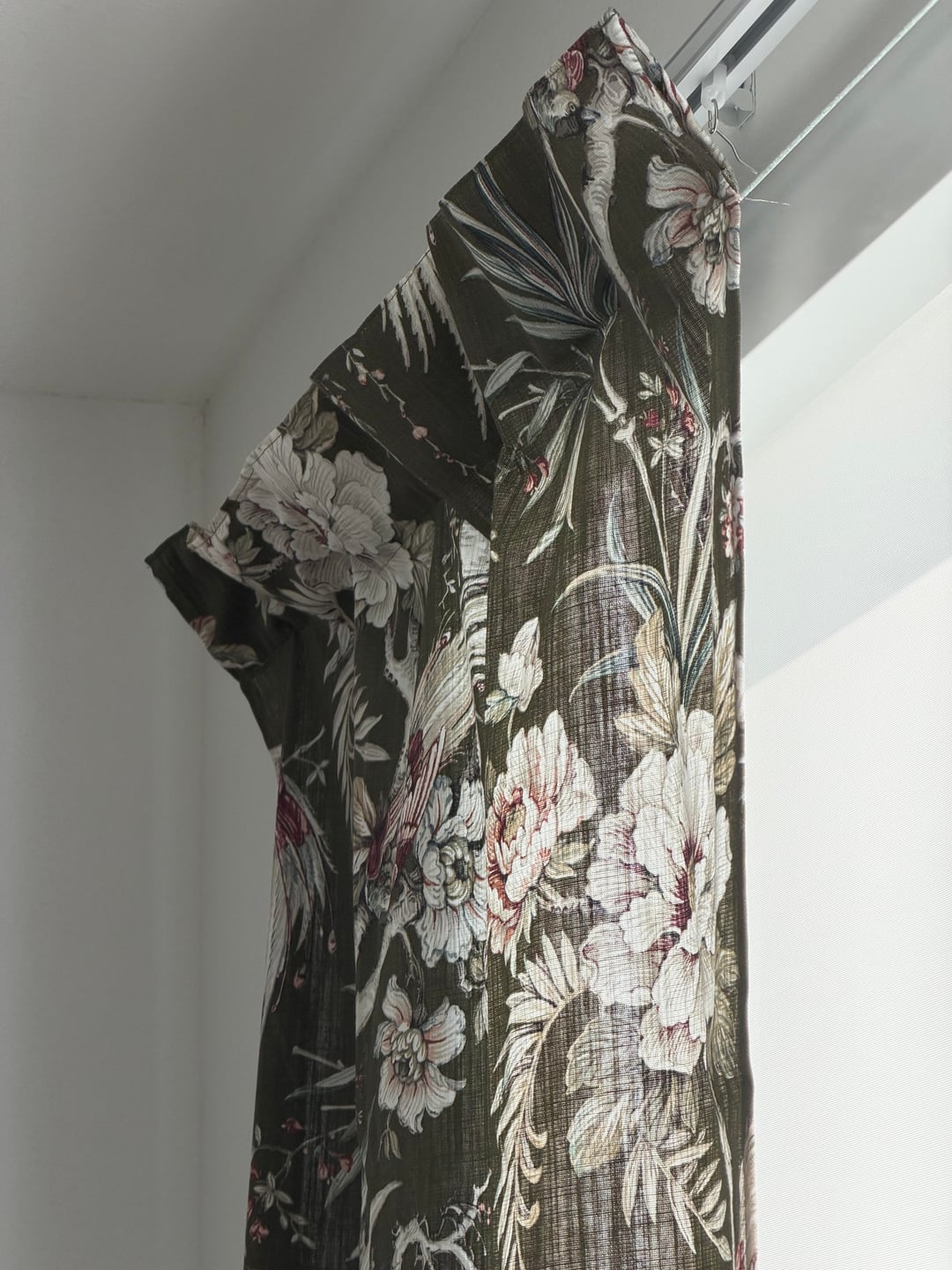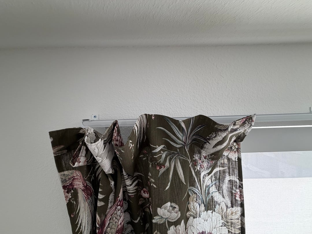 Physics question: is it remotely possible to hang these drapes so the rail doesn’t show? If I place the pins closer to the top, it shows. If I place them lower down like this, the top flops and it shows when they’re open (see pic 2). I feel dumb.
