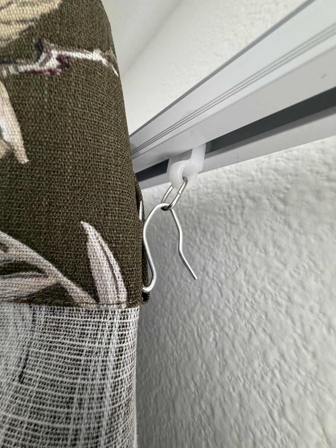 I think the issue is the wrong type of rod for the curtains/draperies you have. But I could be wrong as I could not see enough of the tip back of the panel.
