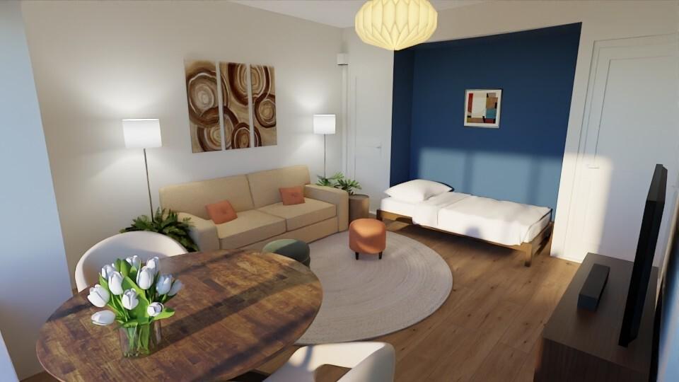 I’m making a 3D design of how to decorate the new apartment I’m moving into and thinking of painting the “alcove” with the bed navy blue. Am I crazy?