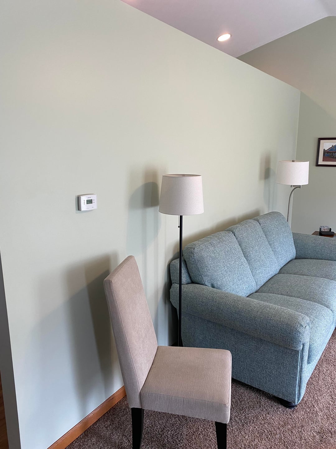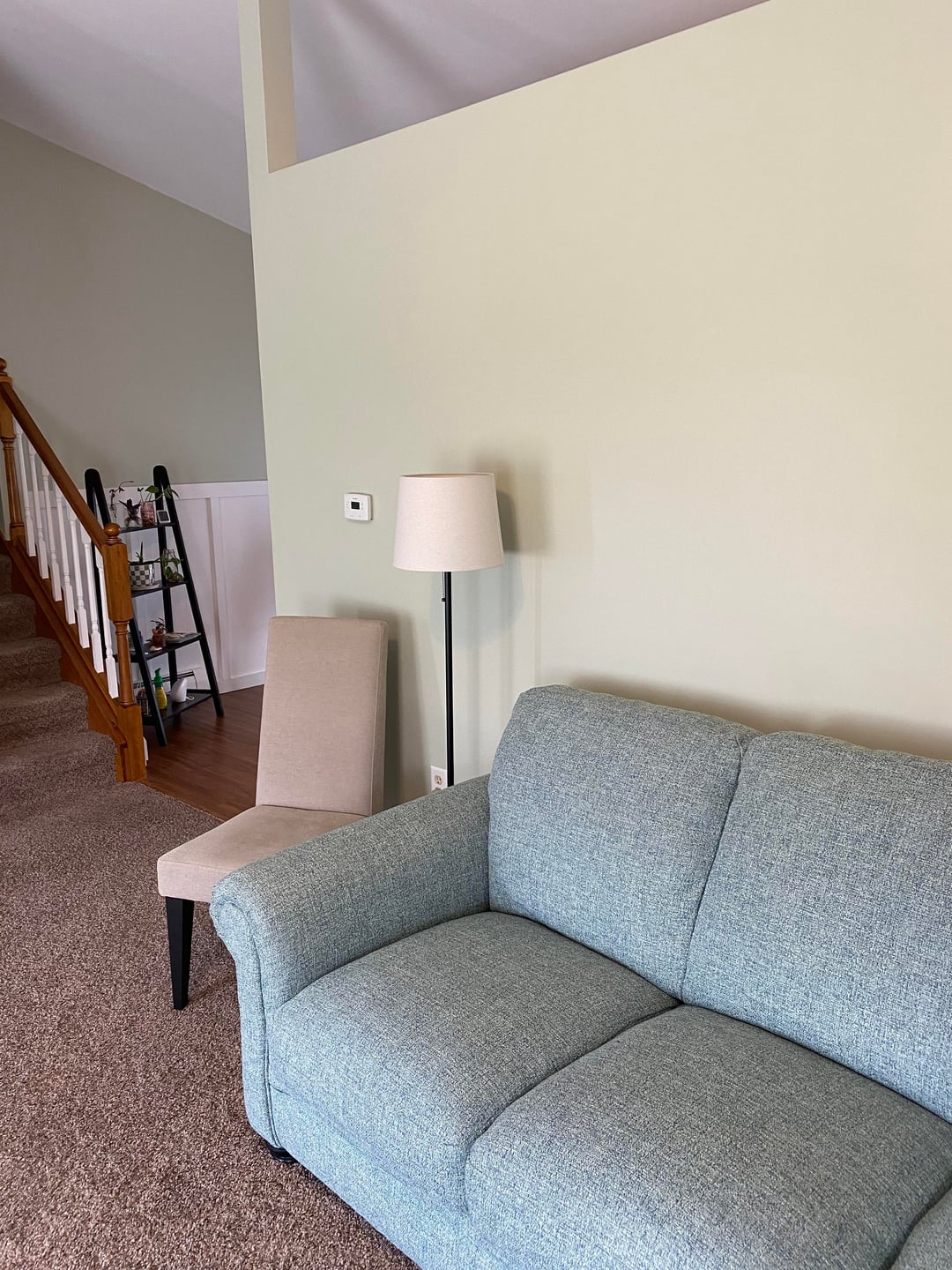 Since the couch has been reupholstered, it feels like this shade of green isn’t working