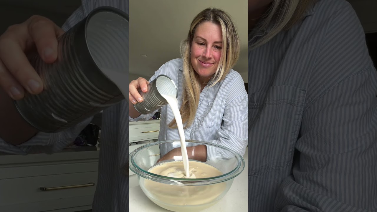 1️⃣ Make the tres leches mixture: Whisk together 1 pieces can sweetened condensed milk, 1 pieces can evaporated milk, and 1 pieces can coconut milk in a bowl until fully combined. This is your tres leches mixture — set half aside for dipping and serving later.