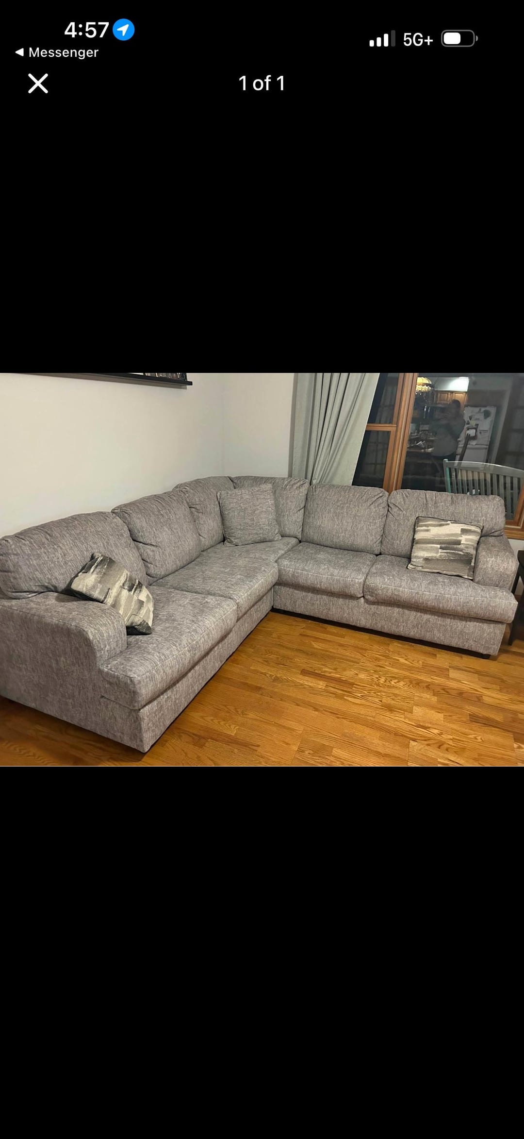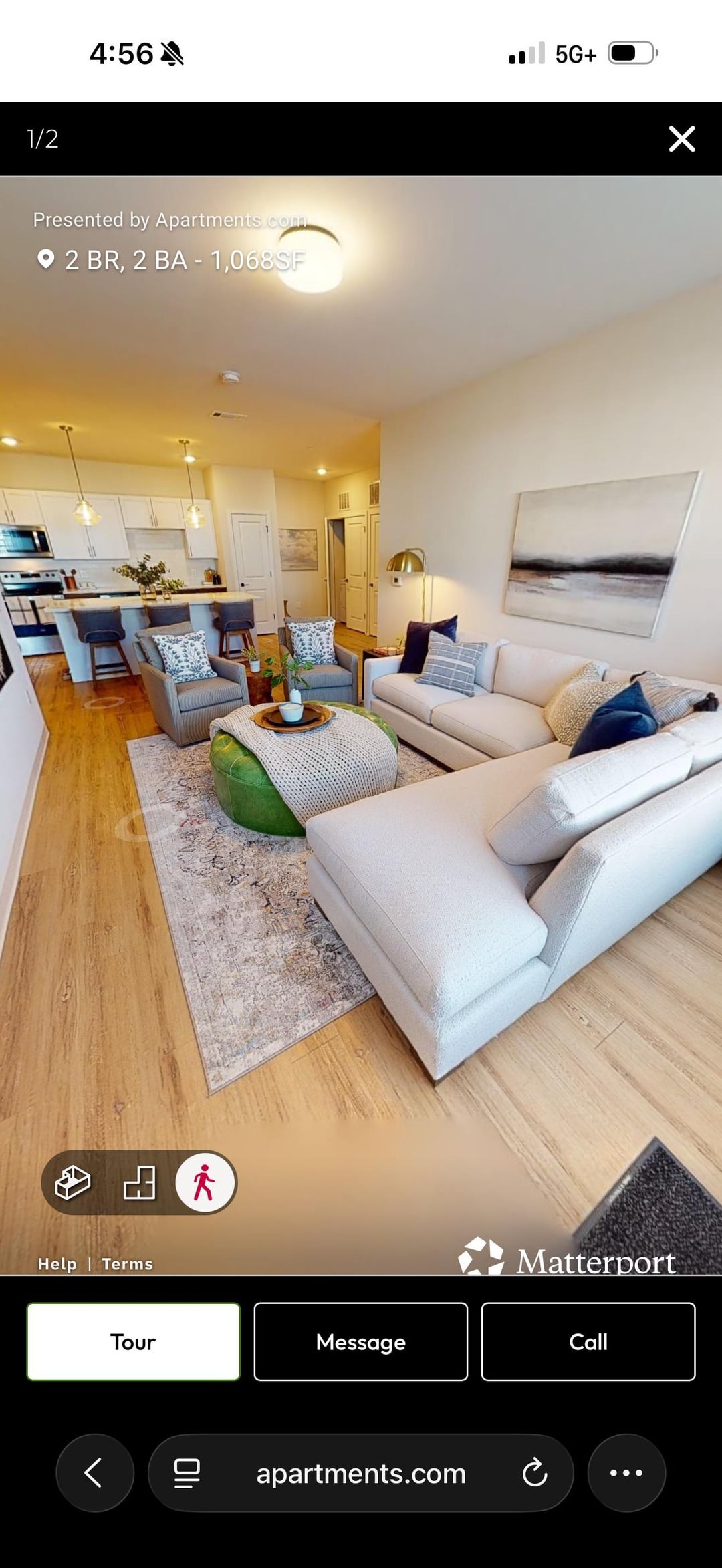 I am moving into an apartment in 2 weeks and have been struggling on finding a rug I think will match. The first photo is of the space: wall and flooring (not my furniture). Second is of the entertainment center for our tv and the third is the couch that will be going into the living room. Any advice would help!