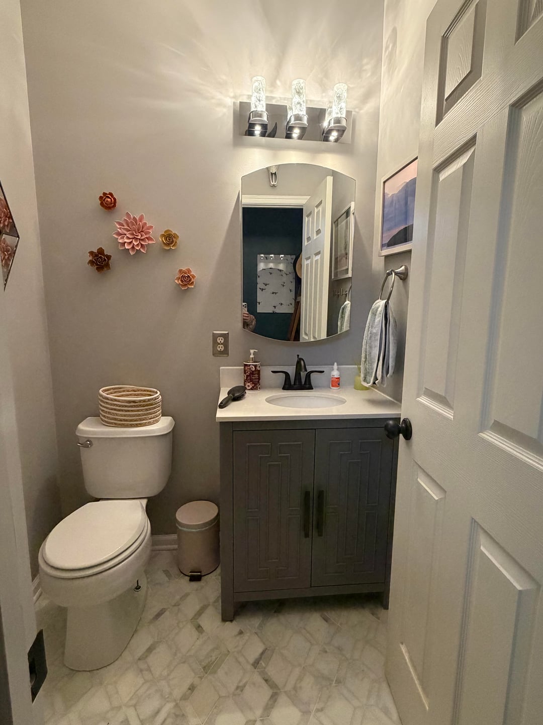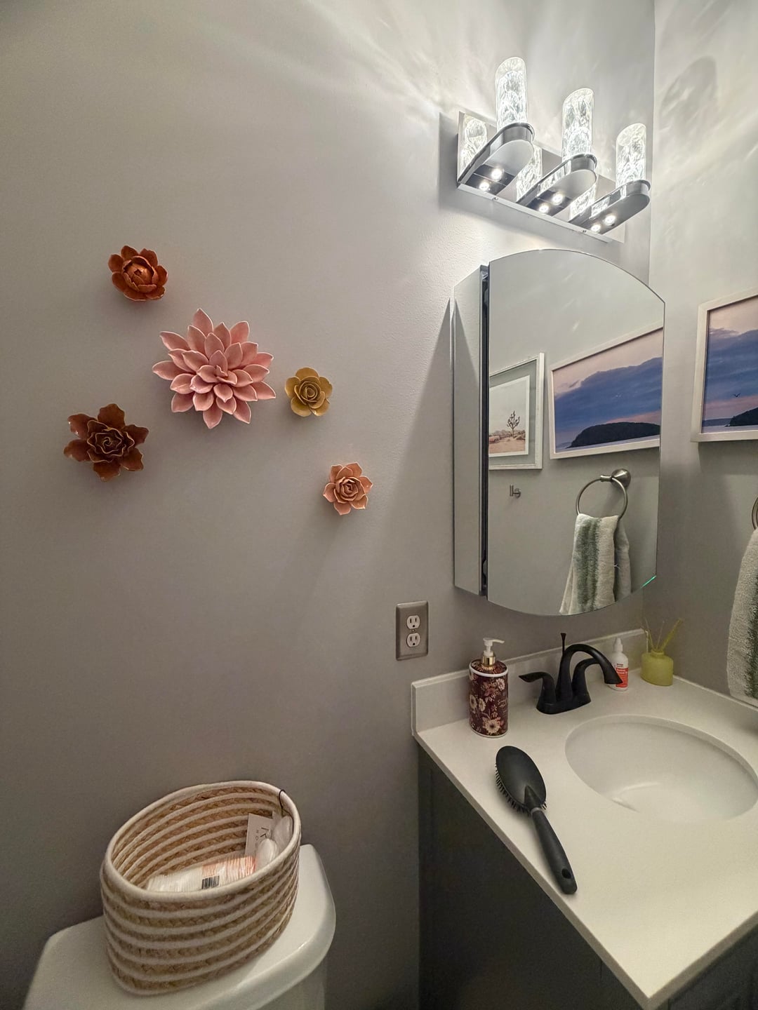 About 7 years ago, I took out a pedestal sink, builder’s lighting, and flat mirror and put in the medicine cabinet, lighting, and vanity/sink in the before shots here. Yesterday I upgraded to something way better. What do you think?by 0dayssince home and gardenhome decoratinghome decorating ideas 2 Comments Proof-Buddy-3864 1 hour ago Looks fantastic! Ok_Runner_5263 1 hour ago Wow! That wallpaper is incredible. The perfect but of pink and green. Looks great!Write A CommentYou must be logged in to post a comment.