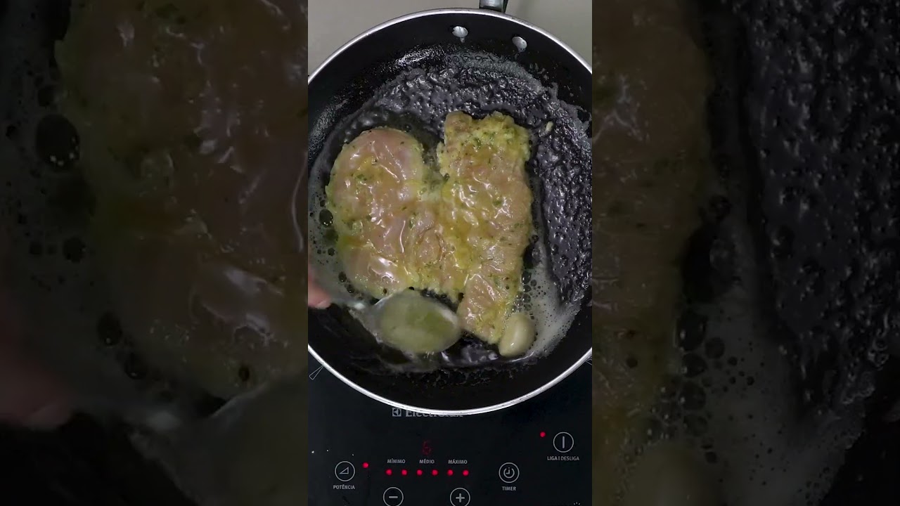 Aqueça uma frigideira com azeite e um pouco de manteiga. Acrescente um dente de alho inteiro apenas para aromatizar. Quando estiver bem quente, coloque os filés e deixe dourar em fogo alto. Durante o preparo, vá regando o frango com a manteiga da frigideira para manter a carne bem suculenta. Quando dourar de um lado e a parte de cima estiver branca, vire e doure o outro lado.