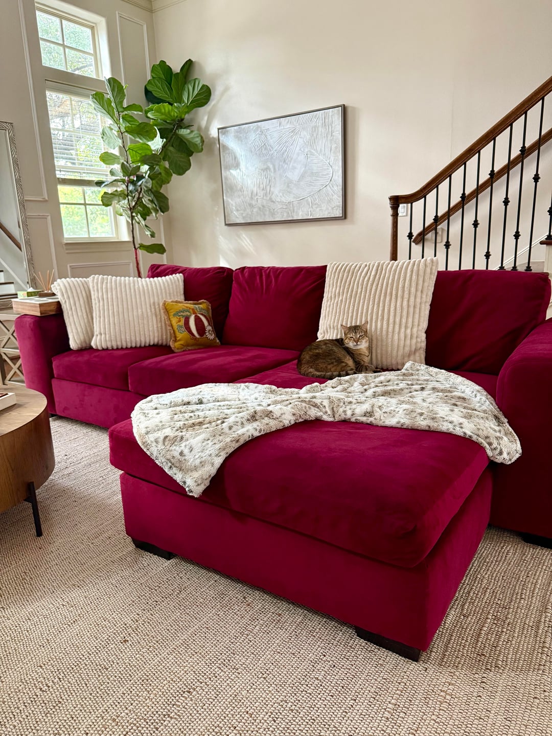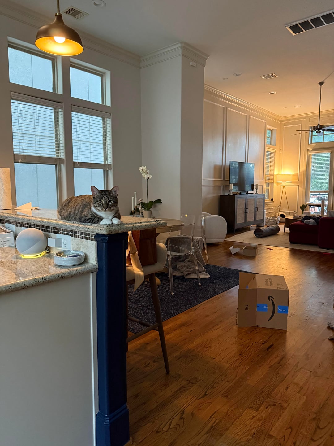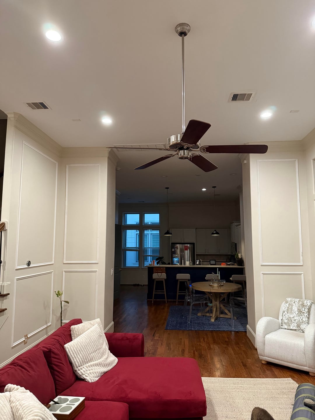 Due to a house fire and smoke damage in my home, my chair, barstools and couch have to go. Also all walls will be repainted! Does anybody have suggestions on cozy chic barstools? Also thinking white dove paint color for the walls since my floors are a chestnut color. I have no idea what to pick for a new couch. All opinions welcome! I’m overwhelmed with decisions ha