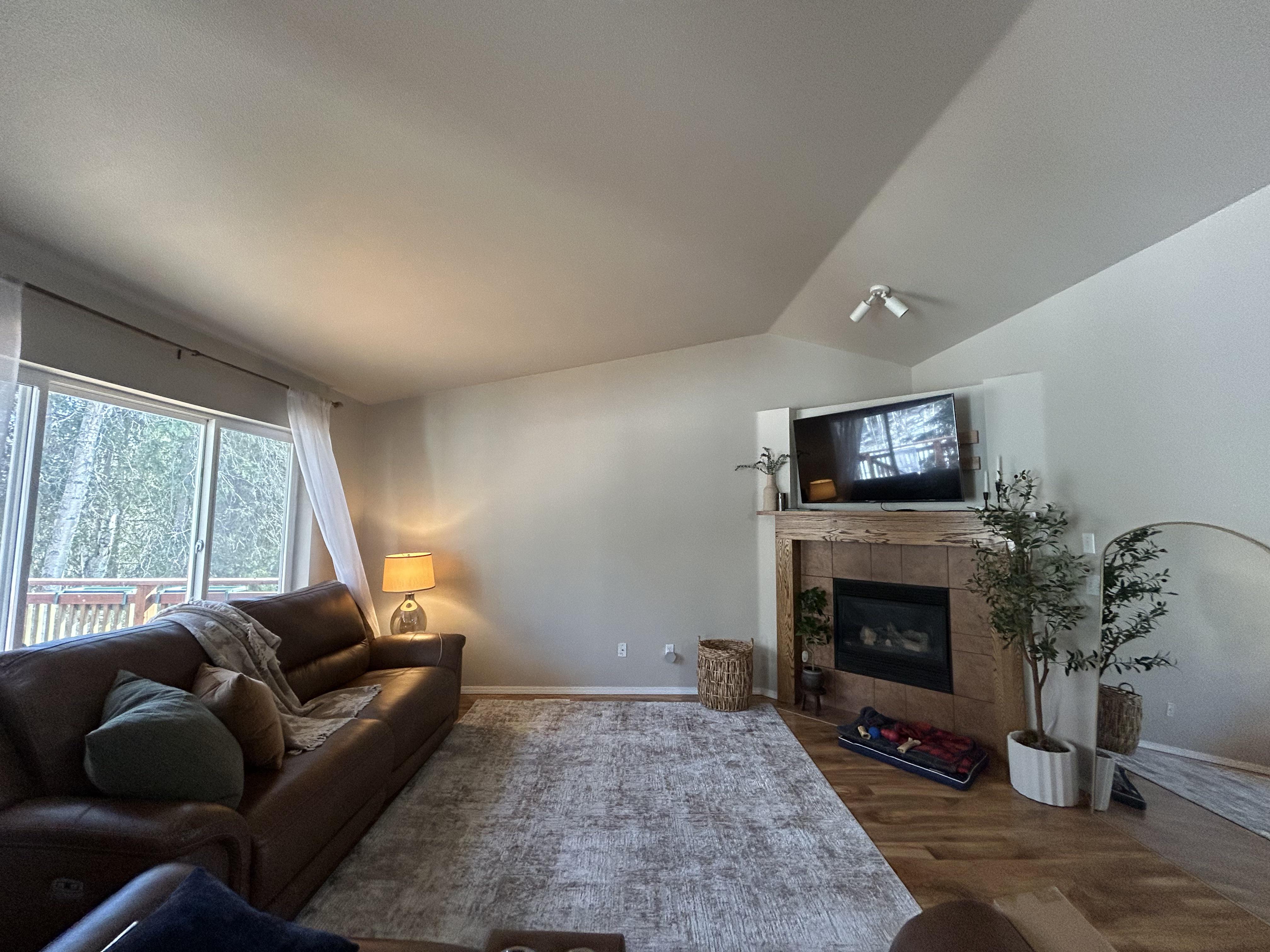 Also the TV above the fireplace was already there when we moved in, so I didn’t choose that setup. I’m honestly open to moving it if there’s a better layout because right now the whole area feels awkward.