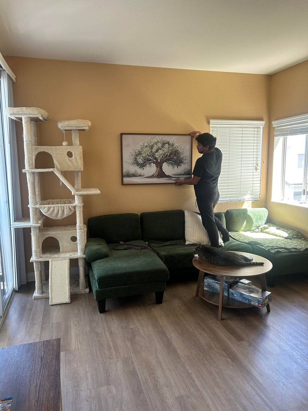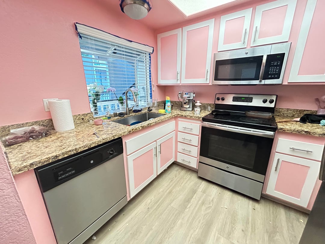 I’m having a bit of regret about the color I chose to paint it last year. I liked it for a while but it’s way too bright for me now and it doesn’t match the countertops imo. The last picture is the color of the living room that connects to the kitchen. I want a color that will help everything tie together.