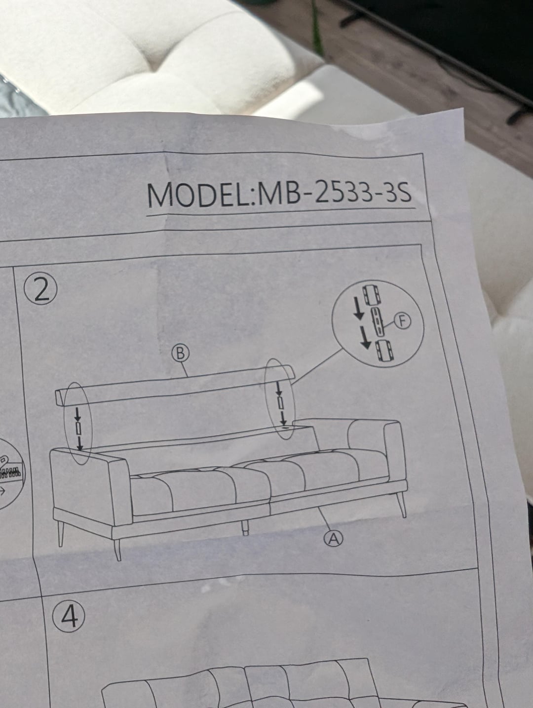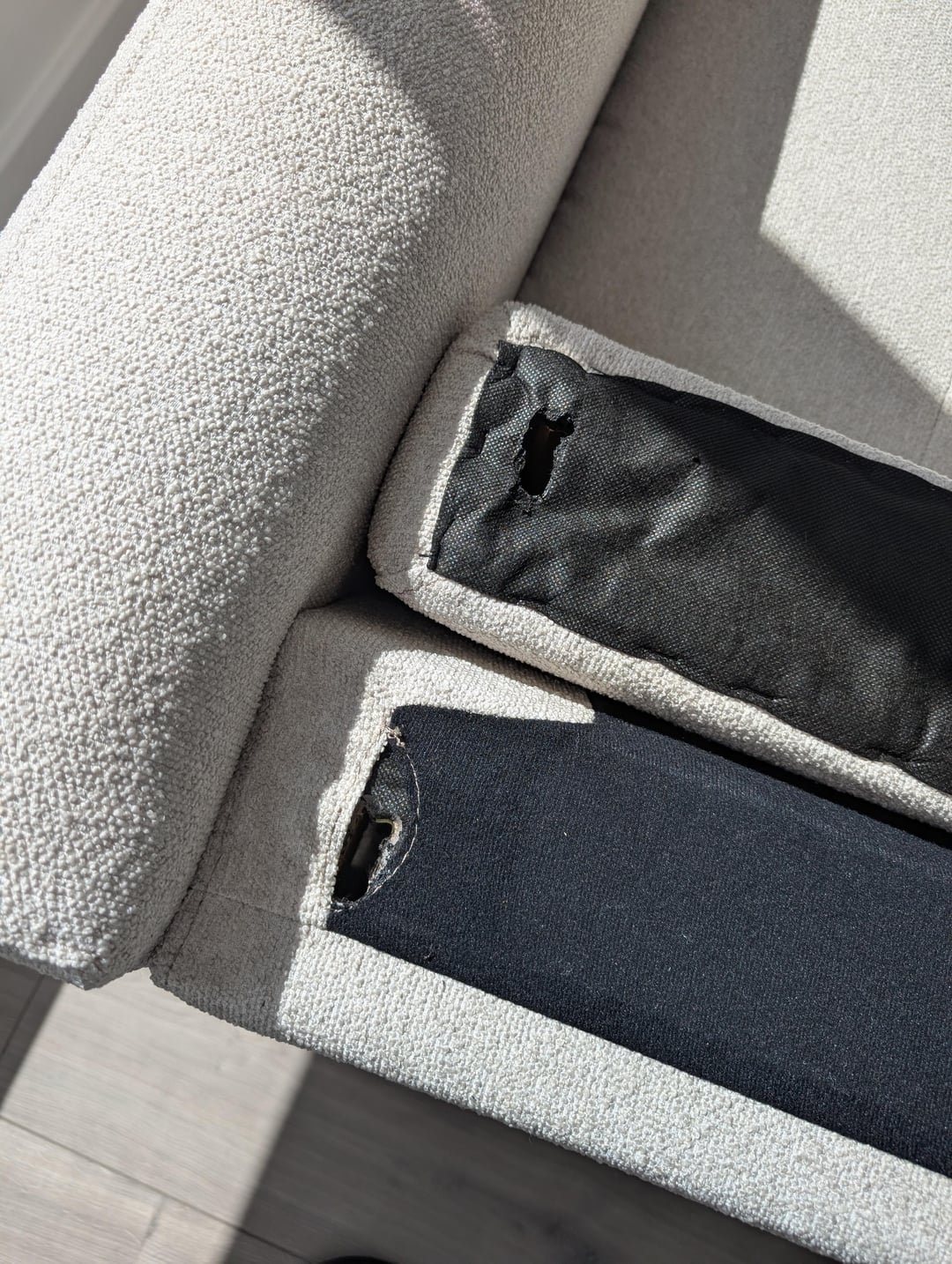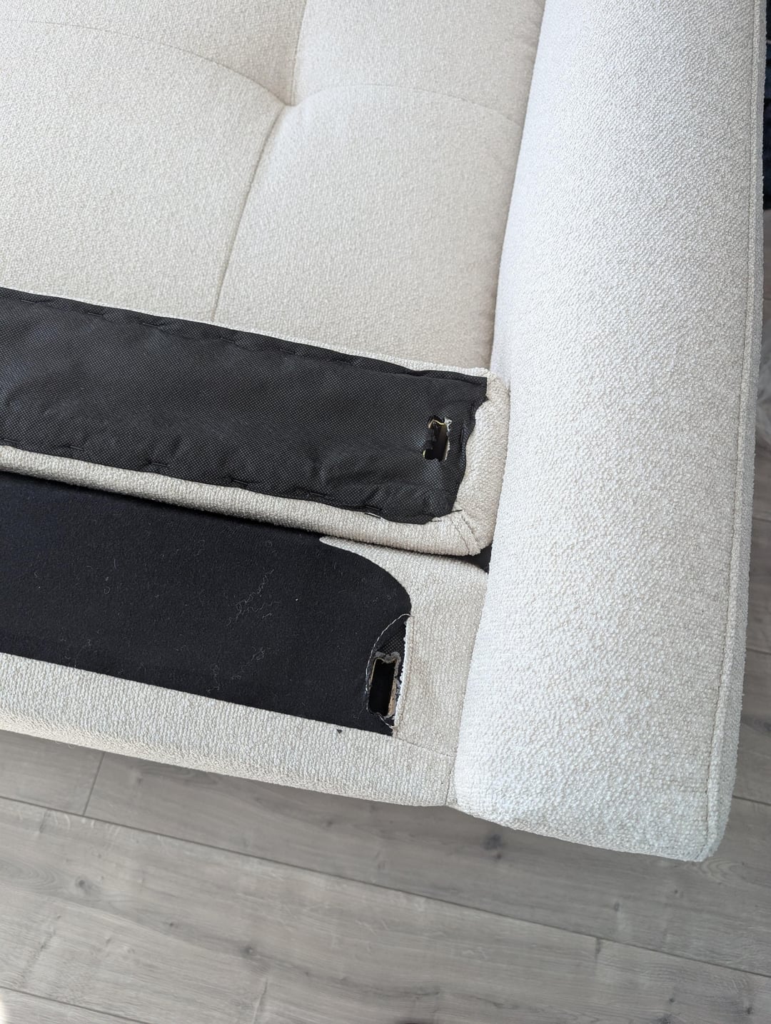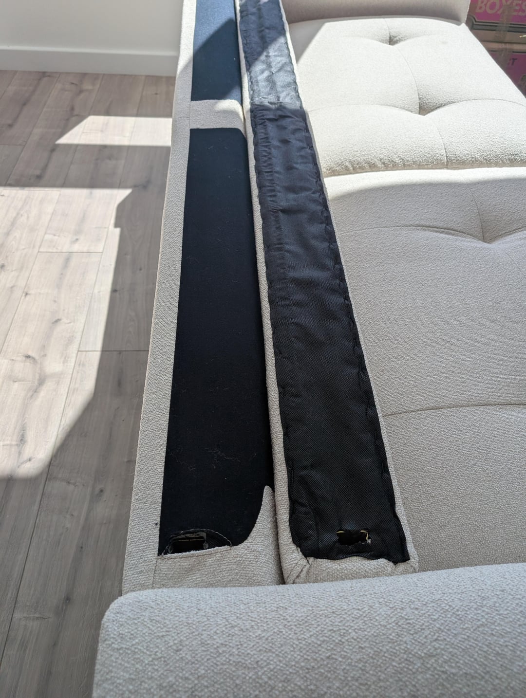 There are two missing connectors to attach the back of the sofa.