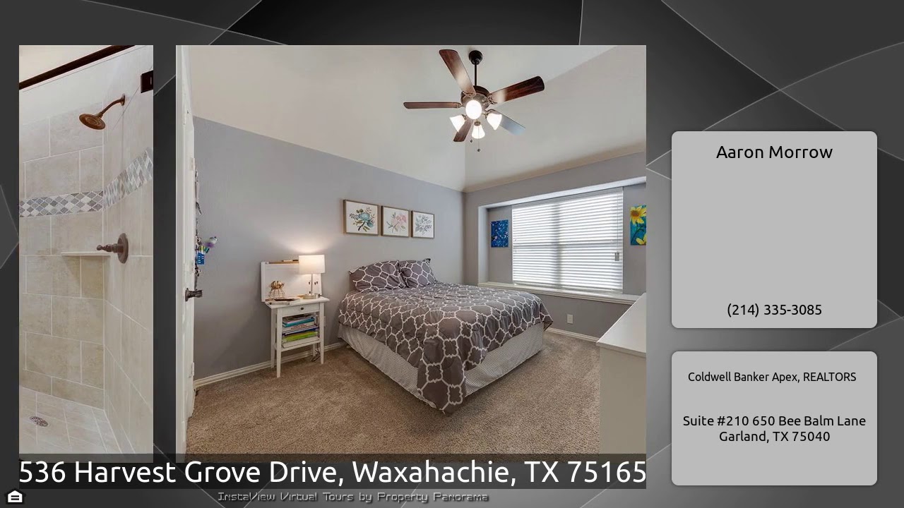 The Virtual Tour for the property at 536 Harvest Grove Drive, Waxahachie, TX 75165 listed for $349,997: Other homes for sale by Aaron Morrow of Coldwell Banker Apex, REALTORS: Immaculate, Highly Upgraded Ready To Move In 4 Bedroom, 3 Bath Bloomfield Home!! Walk In And See All Of The Architectural Features Like Art Niches, Blt In Storage, Trey Ceilings, Archways & Rounded Corners! Exquisite Scraped Dark Wood Flrs Throughout Main La And Kitchen! Study Or Dining Room Off Entry With French Doors, Gourmet Kitchen With Custom Dark Maple Cabs Topped In Exotic Granite, Double Oven, And Centered …