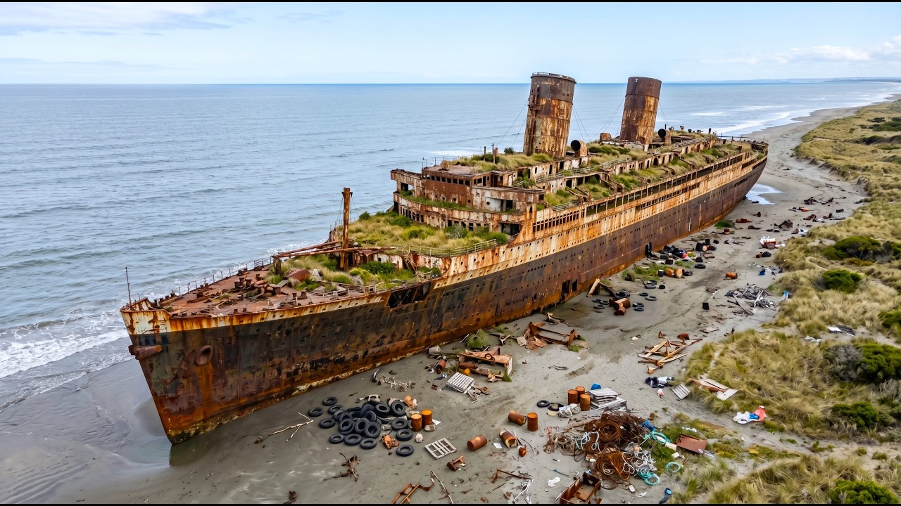 ✅ Discovery of the fully abandoned SS Île de France on the beach