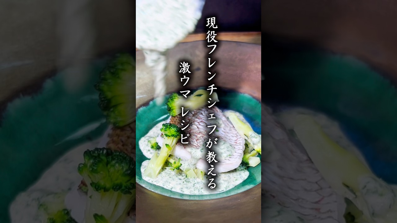 1. 桜鯛のよもぎ蒸し ヨモギのソース ブロッコリーのエチュベ