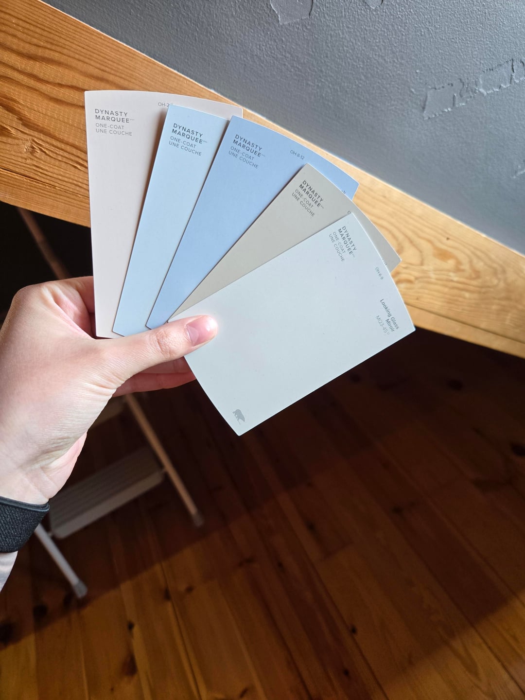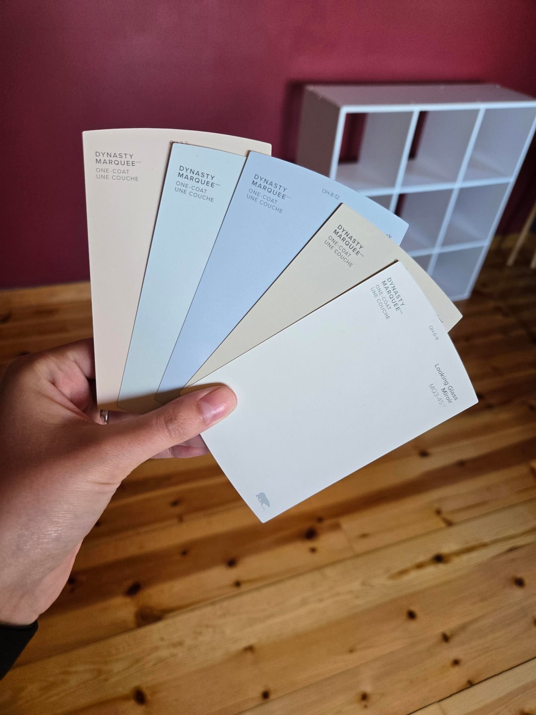 I took yall's advice in my last post and pulled some warmer neutral samples, and some blues. I have a lot of red/dark/colorful vinyl and art as things I hope to put up in this workspace, but I'm struggling to decide on a colour. I want energizing (maybe blue, on those darker days) or beige (because I have so many colours to work around already)!