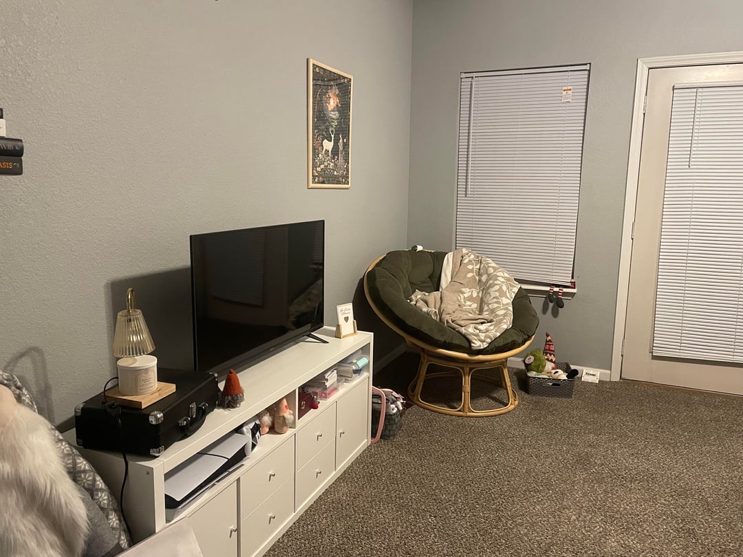 Ignore some of the mess, I didn’t feel like tidying before posting lol. I’m looking to improve my living space, making it more cozy/homey but also looking put together. I’ve always struggled with decorating, so I thought I’d come on here and see what ideas y’all have. I’m really open to any ideas on how to improve the space, whether it’s rearranging, adding things (furniture, rug, decorations, lamps, etc). I’ve kind of been teasing the idea of getting a rug, but tbh I’m not sure if that’s even the right move lol. Any ideas are appreciated!!