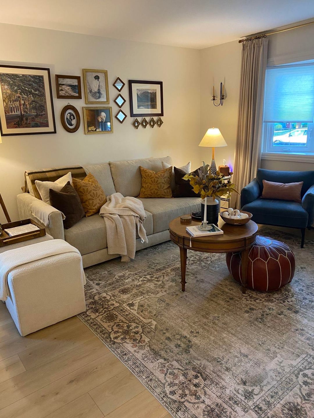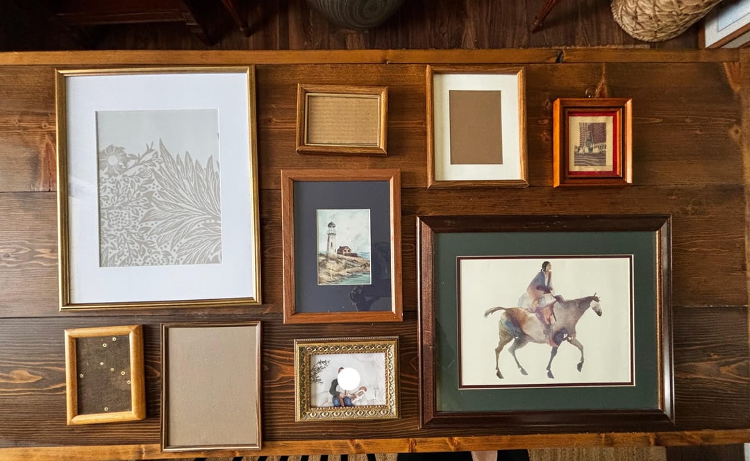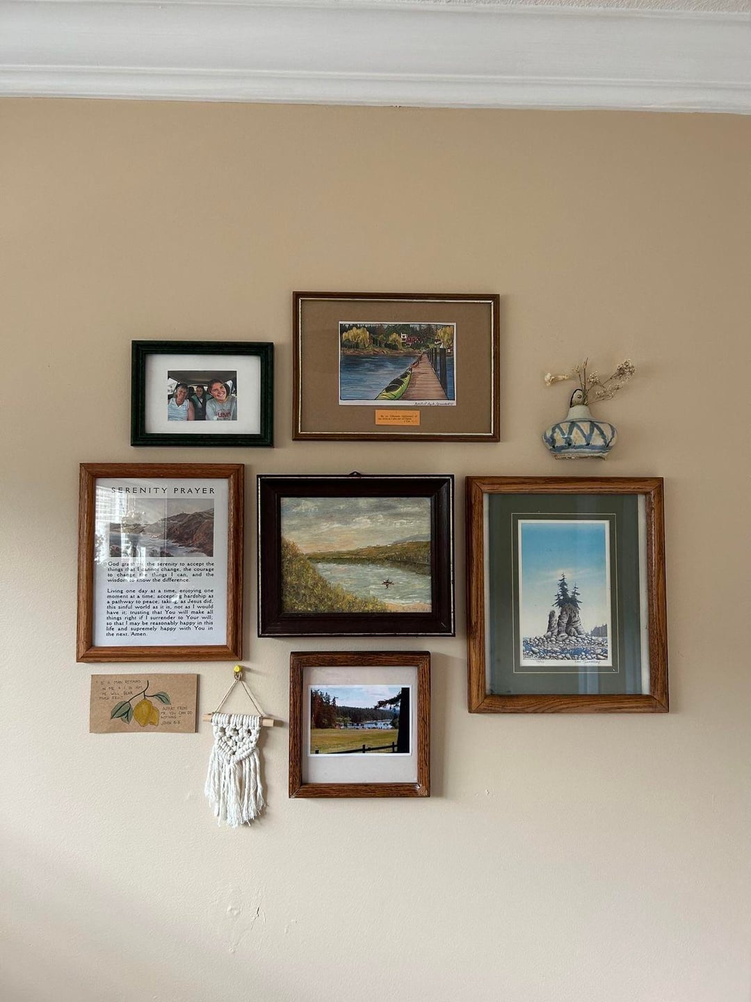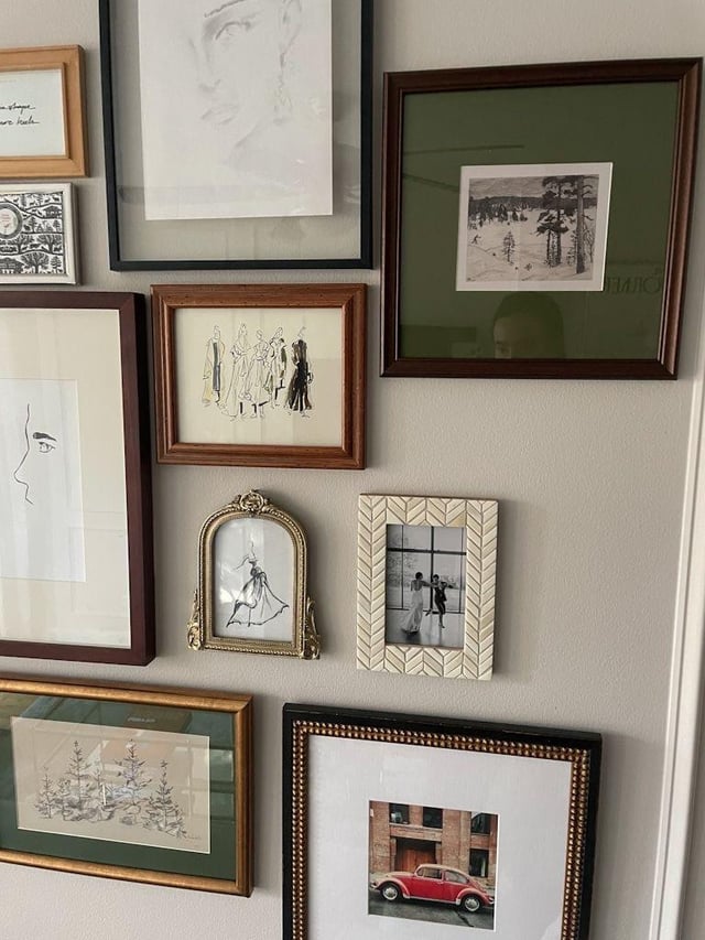 I love love love eclectic gallery walls and want them all over my house, except I’m not great at putting them together. This is the first one I ever did and I know it’s not great, so I’m trying again. I’ve put together a few layouts, but something is still off. Pics 1-2 are my space, 3-5 are my layouts and 6-9 are my inspo pics. How can I make this look better? What am I missing? Thank you!