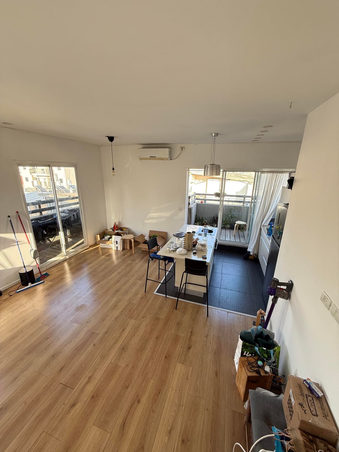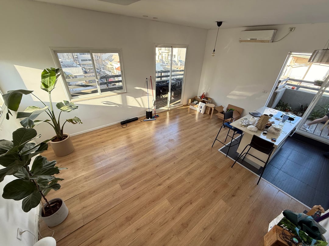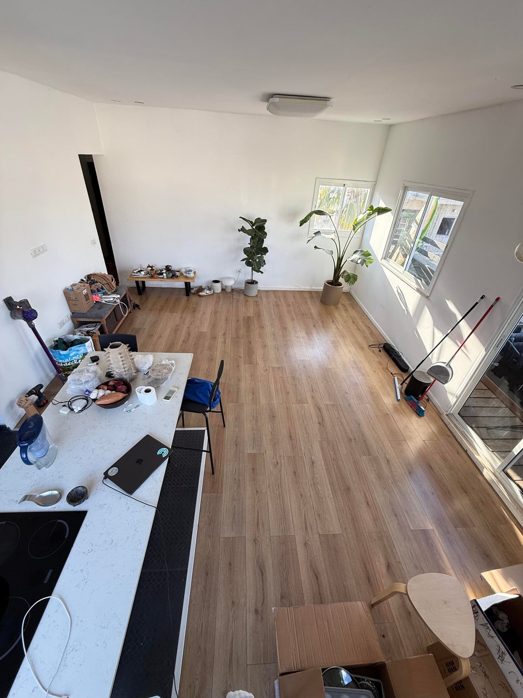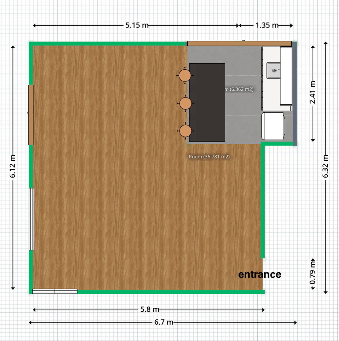 This will be the main living area of the apartment, so I would like to have a living room feel and also a dining room feel. Ideally I would like a small round dining table, large floor shelves and a sofa and tv.