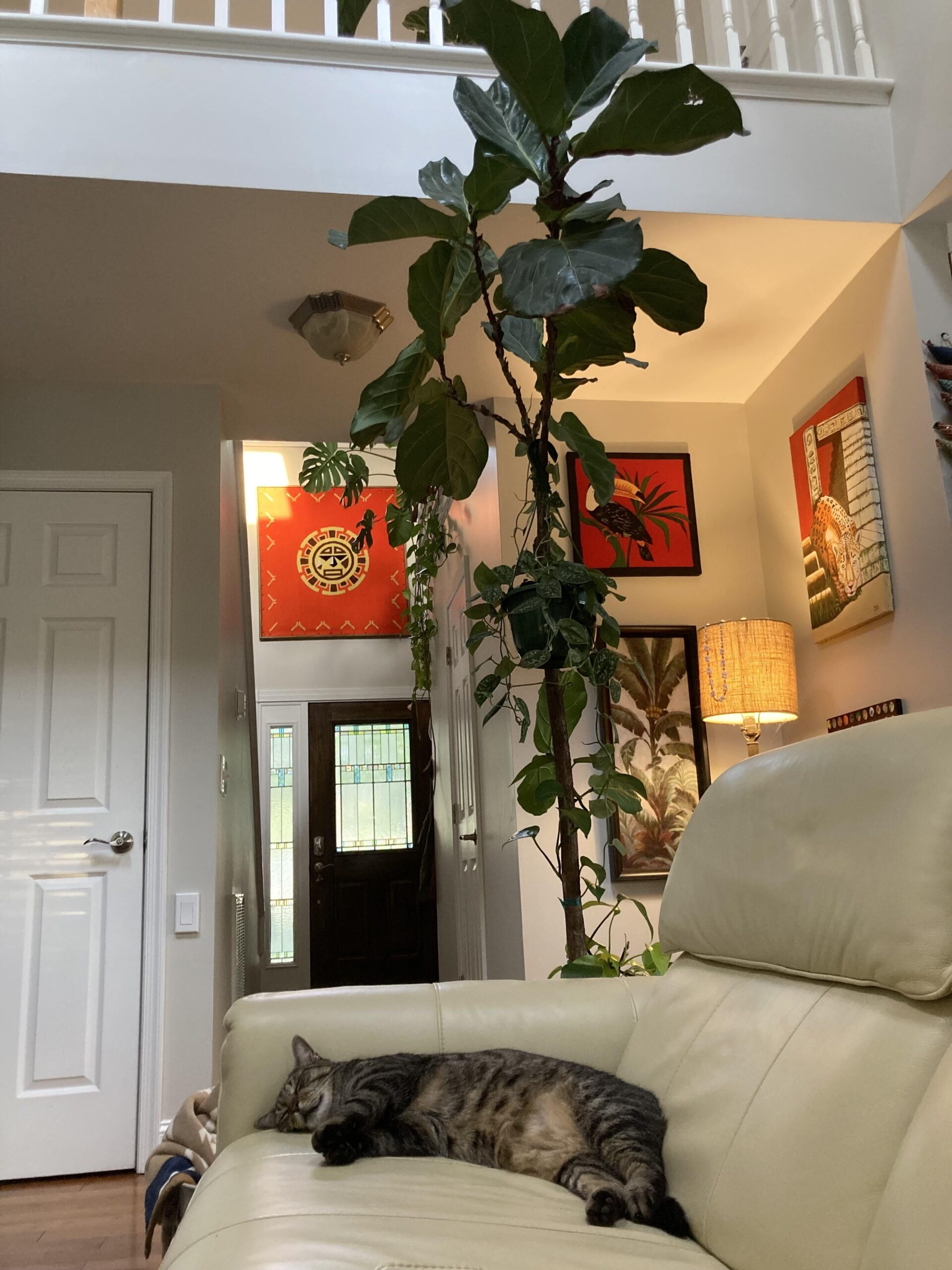 There are two in this hallway, and two more in the walkway above. I can’t seem to find something that works with our style, which I don’t know what to call. Jungle-weirdo?