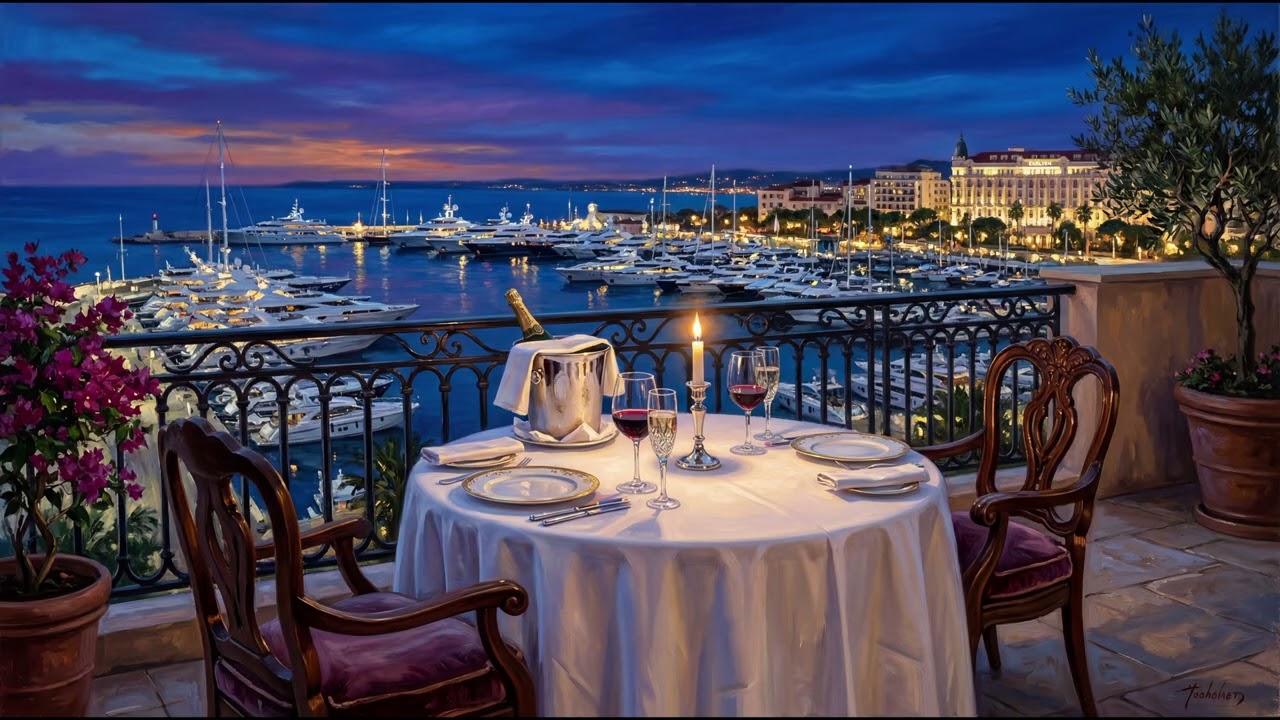 Enjoy the elegant and romantic atmosphere of an evening in Cannes with relaxing French Riviera restaurant music.
