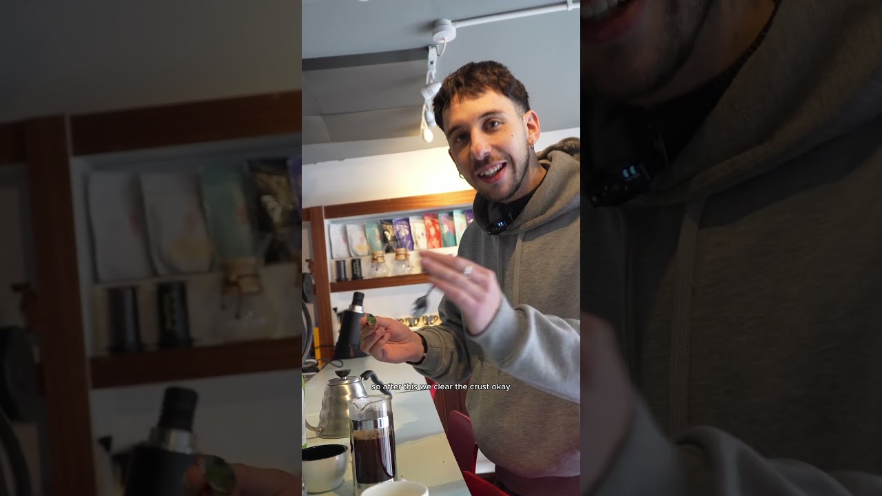 After 4 minutes, gently break the crust with two spoons. This releases the aromas and enhances the natural process characteristics of the coffee.