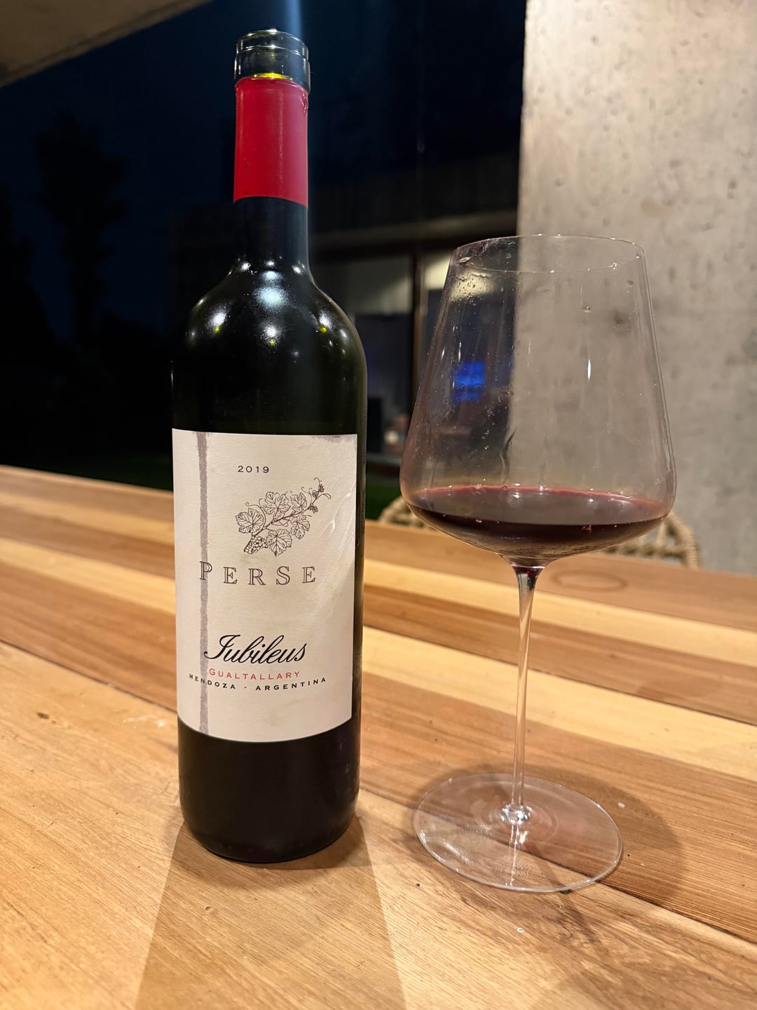Started with a PerSe Jubileus 2019 (Gualtallary, Argentina) and honestly… wow. Proper high-altitude wine with both power and finesse. Deep, dark color—looks serious from the start.
