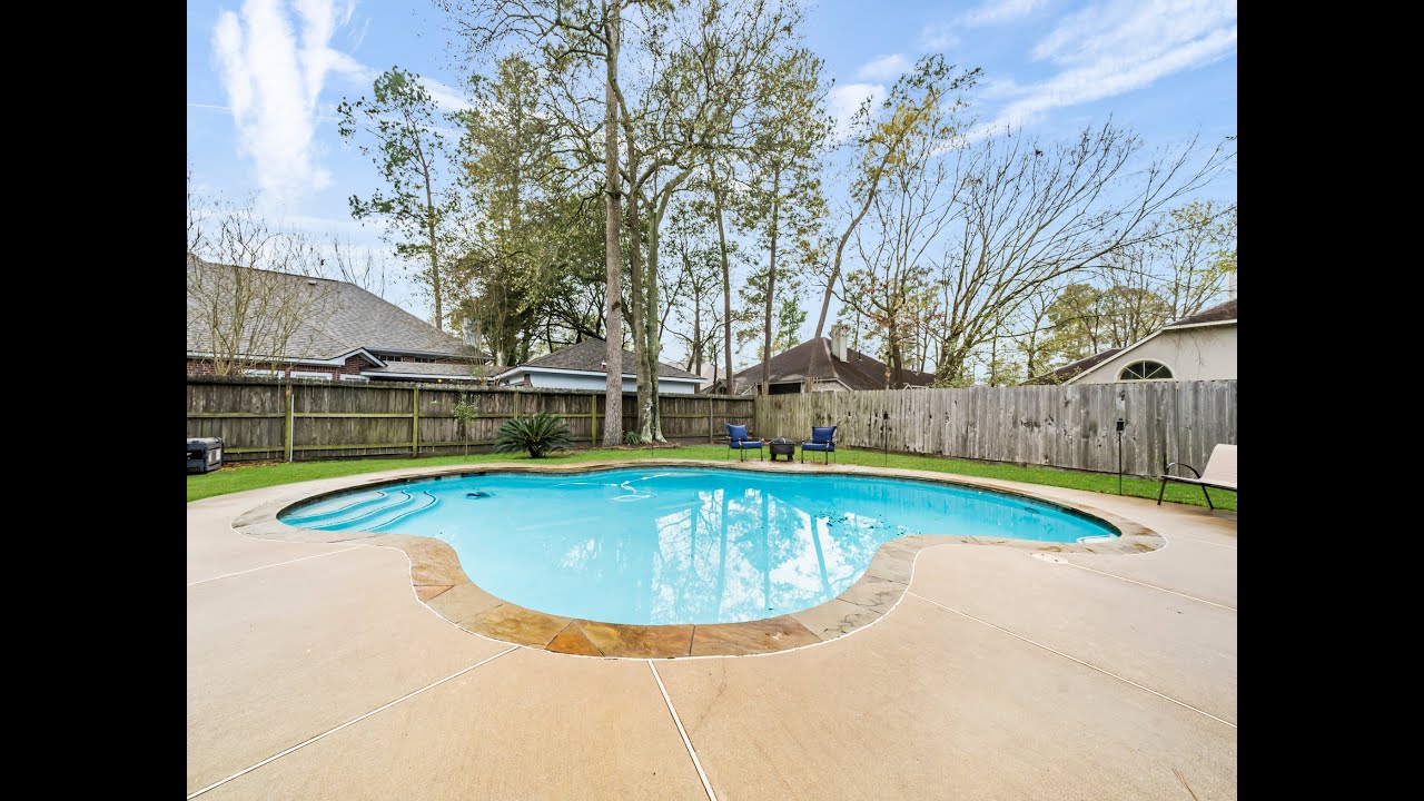 Gorgeous home with relaxing backyard oasis features a heated pool, new roof in 2019, zoned to coveted CISD schools and easy access to The Woodlands, Exxon campus, I-45, Grand Parkway & Hardy Toll Rd. This updated home has hardwood and tile floors throughout the living areas and a two story foyer with curved staircase leads to study with French doors & formal dining room. Family room has gas log fireplace flanked by custom built-ins, recessed art niche & windows overlooking the backyard. Island kitchen touts 42” cabinets, granite counters, 5-burner gas range, walk-in pantry, breakfast bar & nearby utility room with sink. Spacious master suite with room for a sitting area includes two closets & master bath has granite counters, dual sinks, whirlpool tub & separate shower with seating. Secondary bedrooms with high ceilings include nearby study nook with built-in desk, shelving & access to second full bath. Backyard includes mature trees, pool, plenty of decking & private changing room.