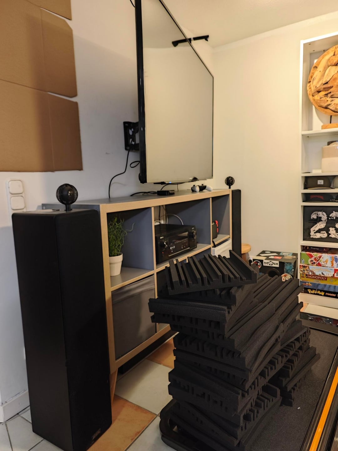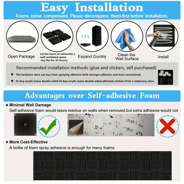 My plan was to mount the foam panels with cardboard behind them as a spacer layer and use industrial spray adhesive.