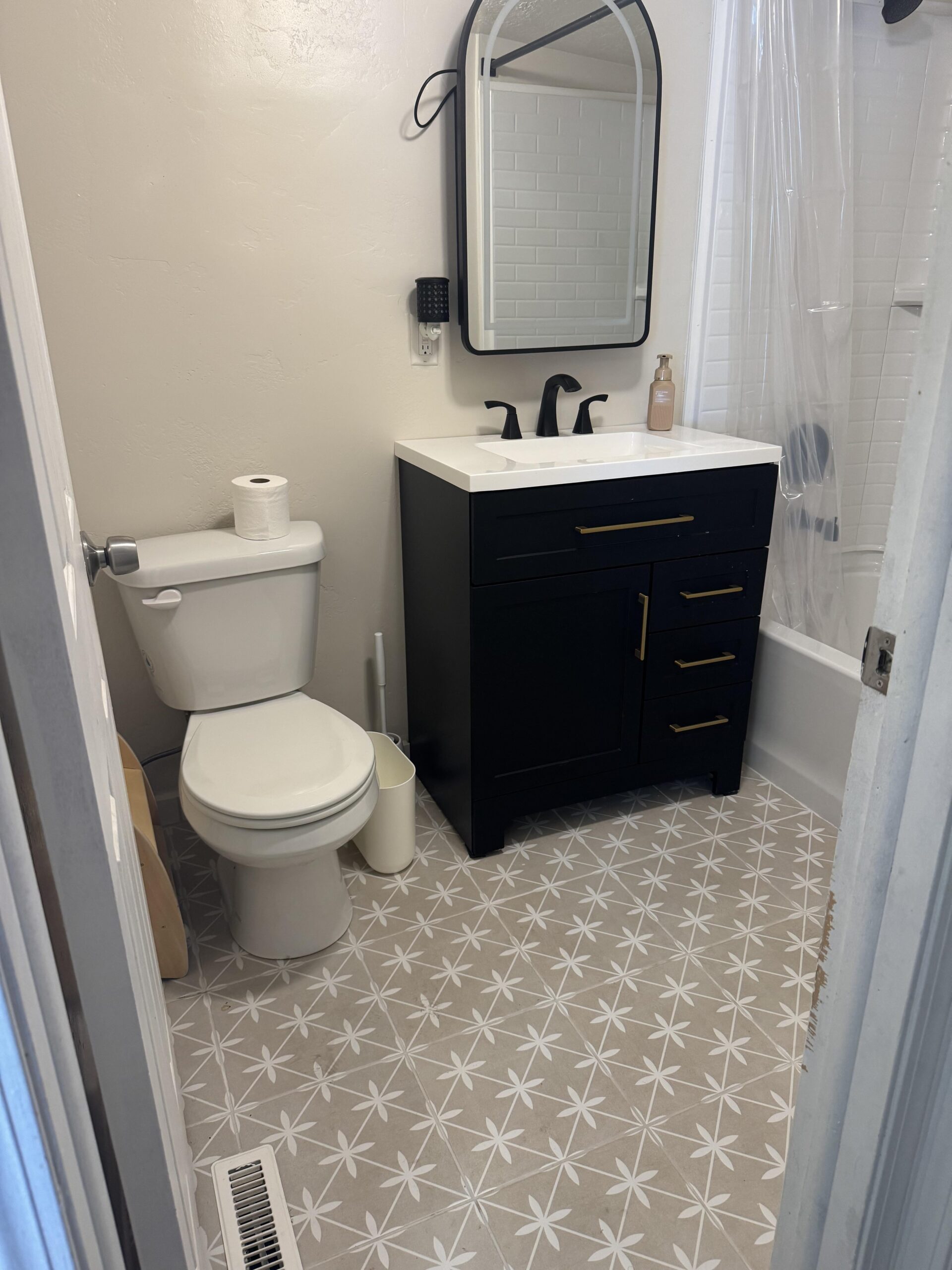 And I’d definitely add a piece of art above the toilet to make the space feel more finished and intentional.