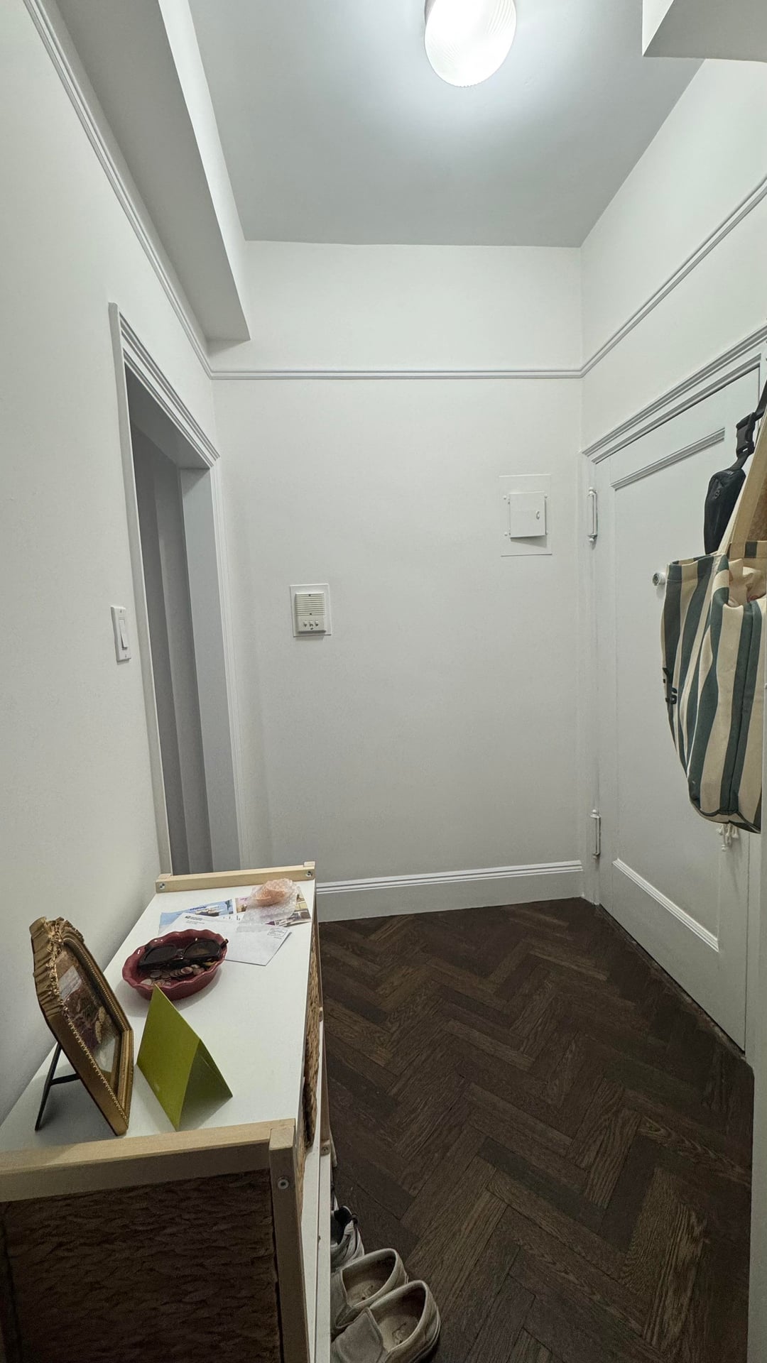 I’ve thought about either a slim shoe storage cabinet or a small bench/storage ottoman, but feel like typical entry tables/cabinets will be too deep for the space I have.